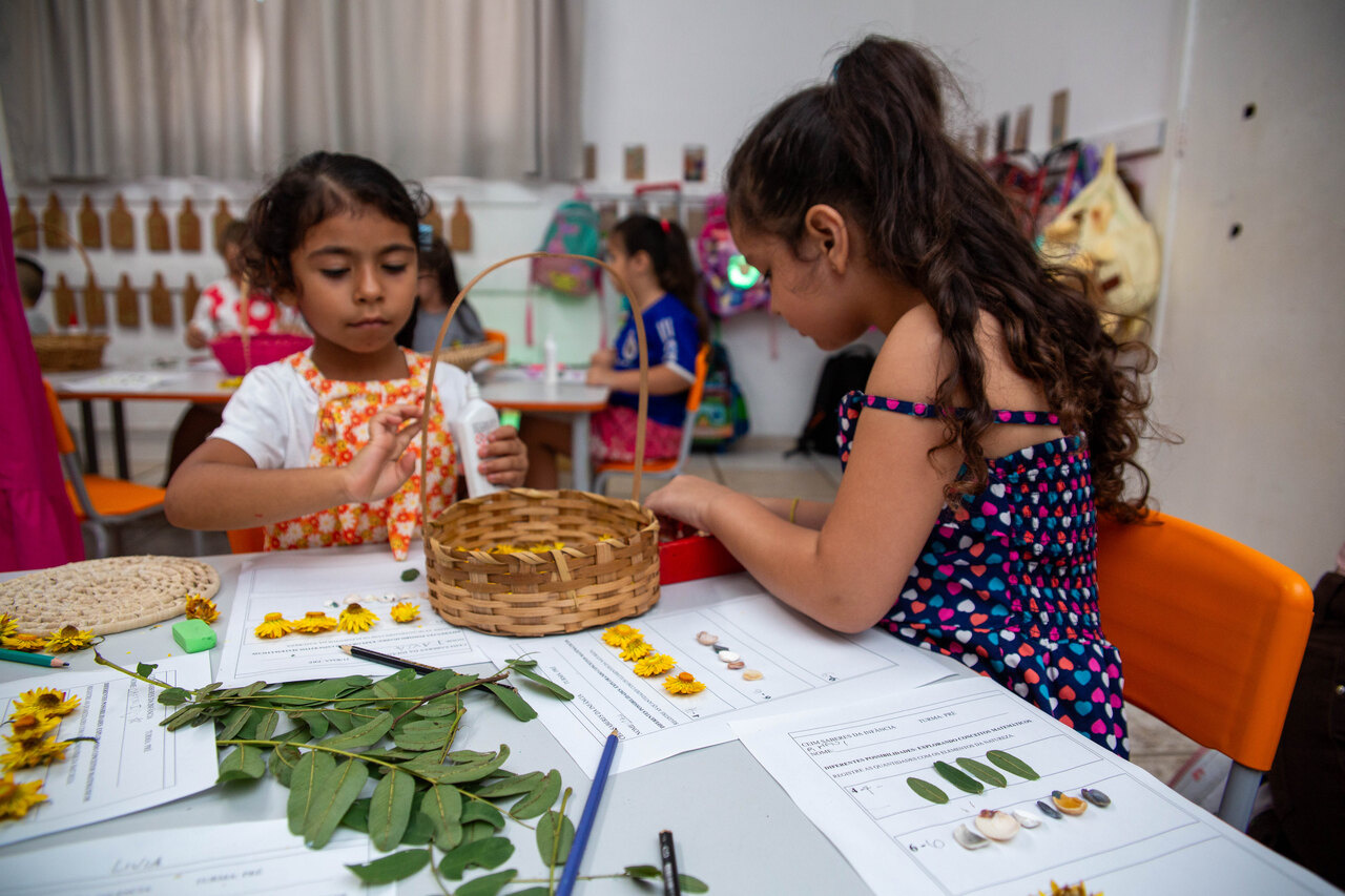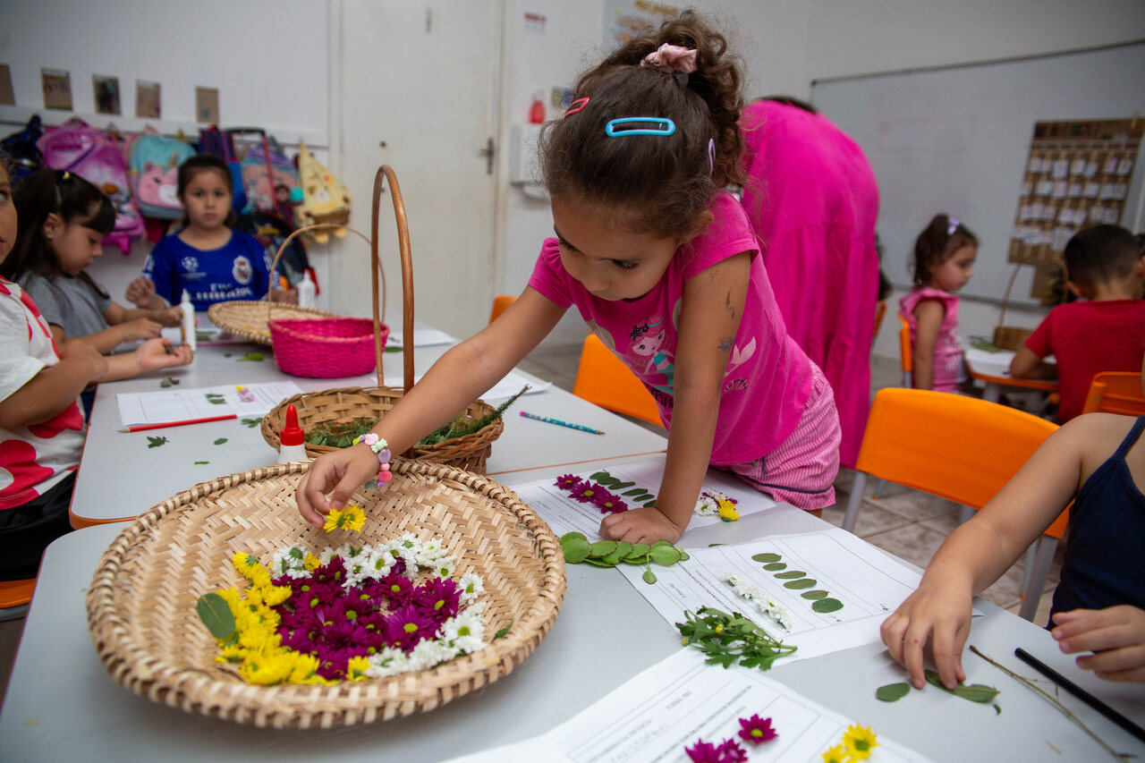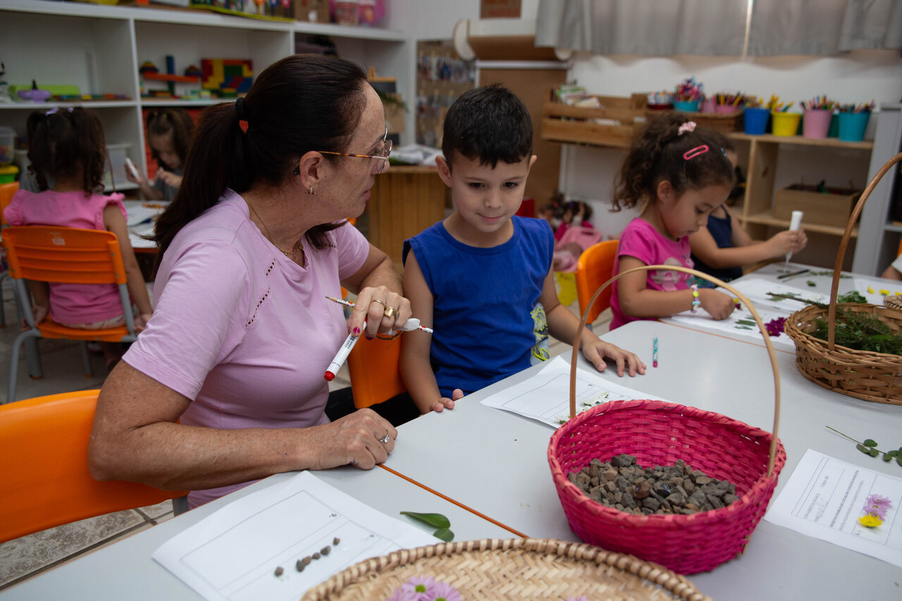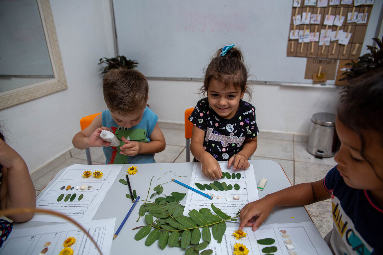 No CEIM Saberes da Infância, as turmas de pré-escola estão aprendendo a relação entre números e quantidades com o auxílio de elementos da natureza. A ação faz parte do projeto Lá fora é aqui dentro: duas pesquisas que tornam visíveis as relações entre o ser humano e a natureza.
