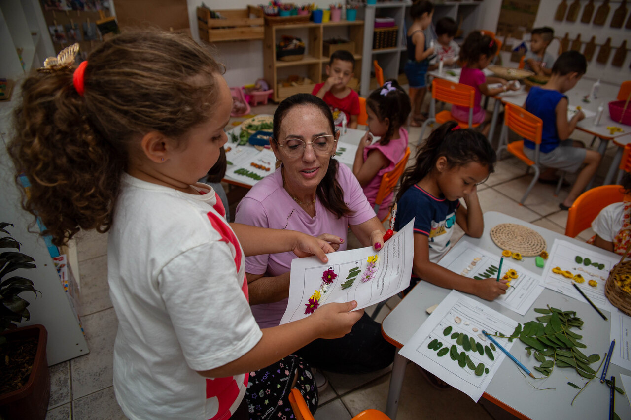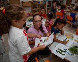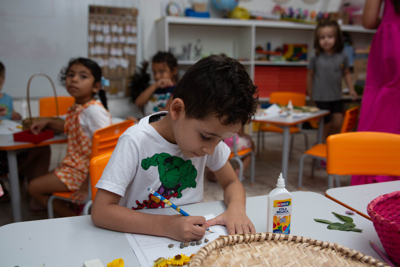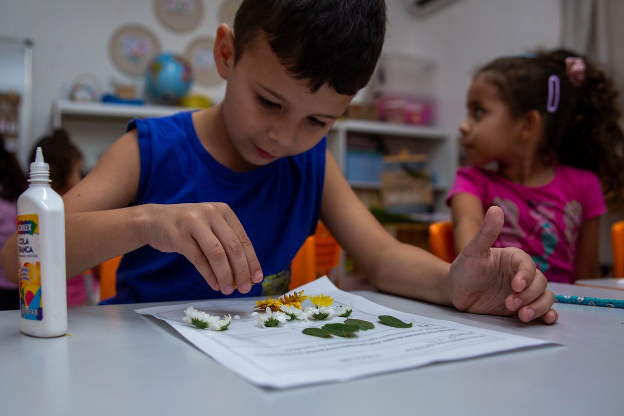 No CEIM Saberes da Infância, as turmas de pré-escola estão aprendendo a relação entre números e quantidades com o auxílio de elementos da natureza. A ação faz parte do projeto Lá fora é aqui dentro: duas pesquisas que tornam visíveis as relações entre o ser humano e a natureza.