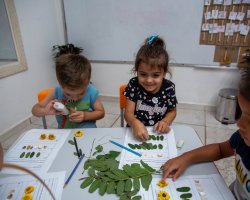 Durante a atividade, as crianças puderam realizar a contagem das quantidades, utilizando folhas, pedrinhas ou sementes, agrupando e comparando quantidades. Ao mesmo tempo foram apresentados aos pequenos conceitos como os de classificação e organização, a partir dos quais torna-se possível separar os elementos da natureza por cor, tamanho, formato ou tipo, criando sequências e padrões.