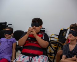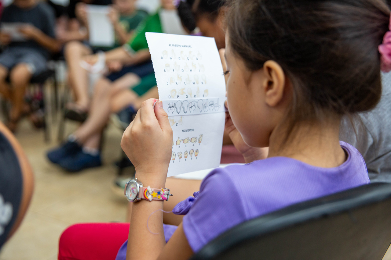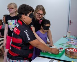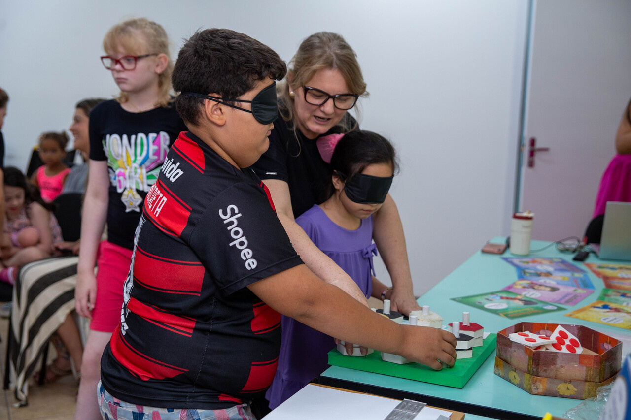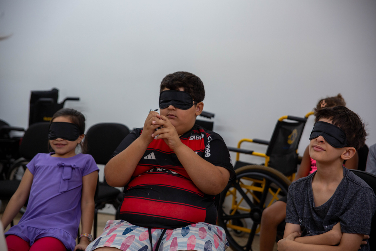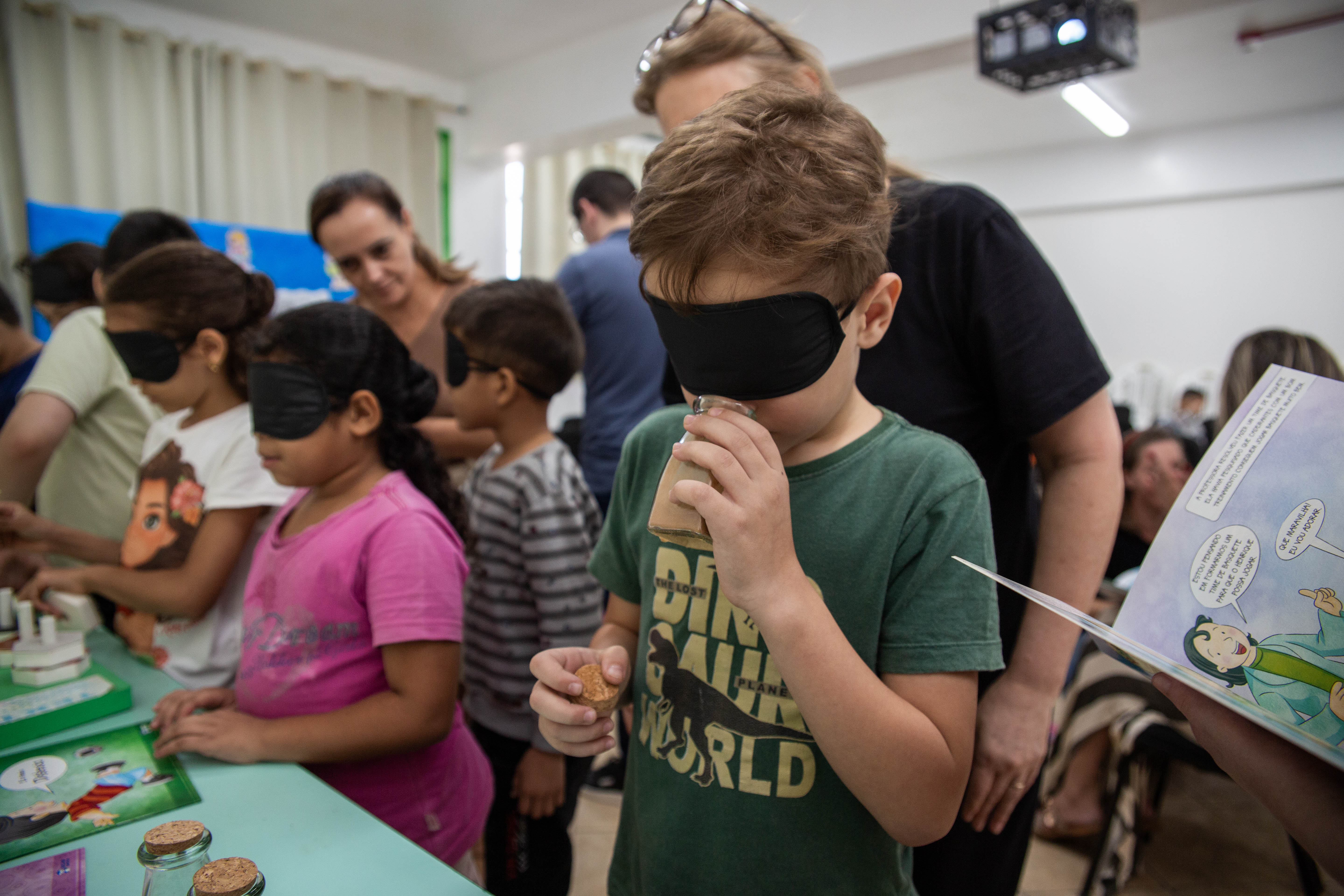 Durante as atividades, os alunos tiveram contato com a Língua Brasileira de Sinais (Libras), conheceram o alfabeto em Braille e participaram de experiências sensoriais envolvendo cheiros, texturas e caminhadas guiadas, simulando situações do cotidiano de pessoas com deficiência visual.