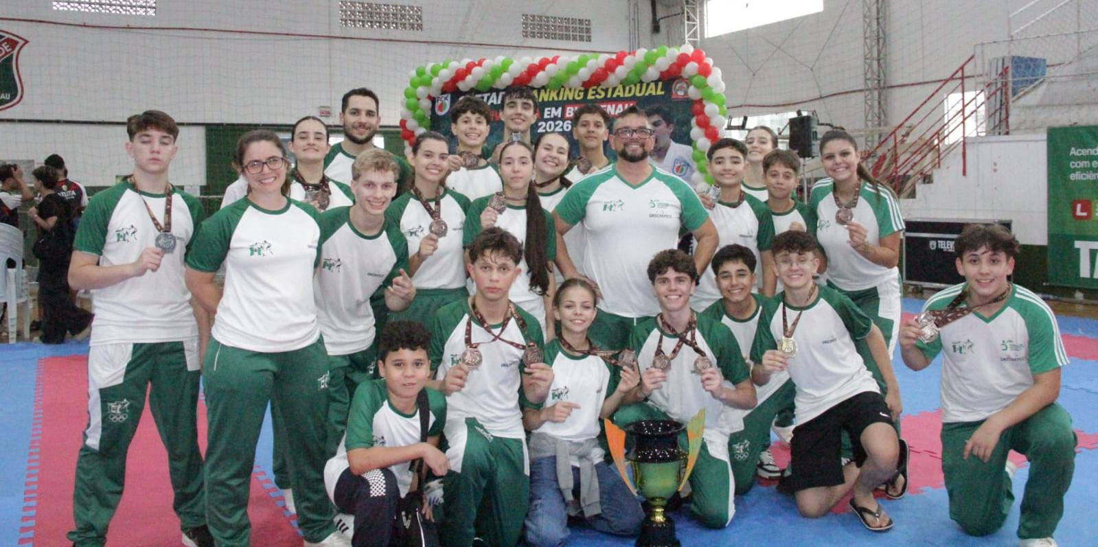 A equipe Unochapecó/Arawaza Brasil/Prefeitura de Chapecó de karatê participou da primeira etapa do Campeonato Catarinense de Karatê 2026, realizada em Blumenau, neste sábado (11), e conquistou a quarta colocação geral, entre 33 associações do estado.
