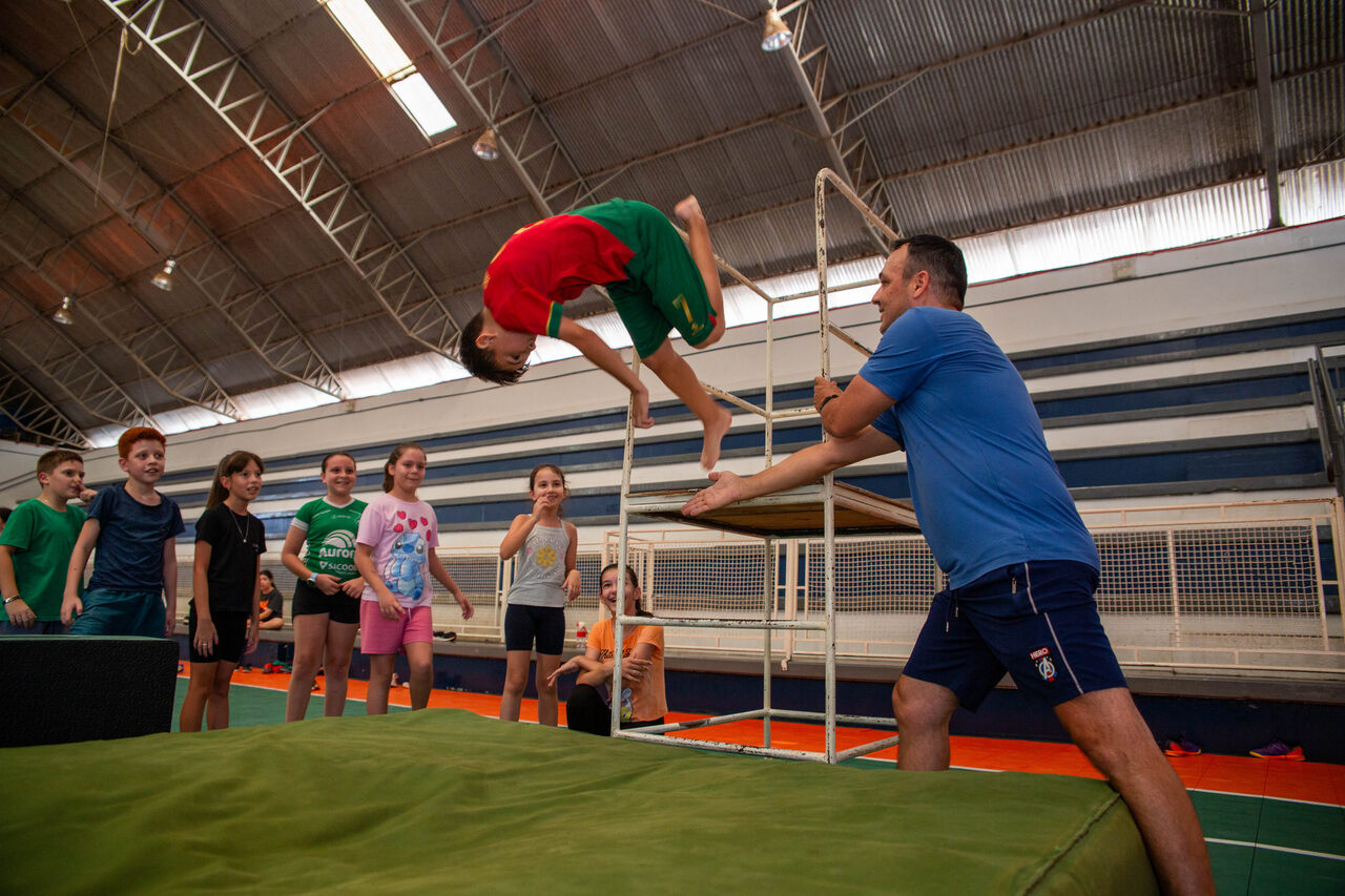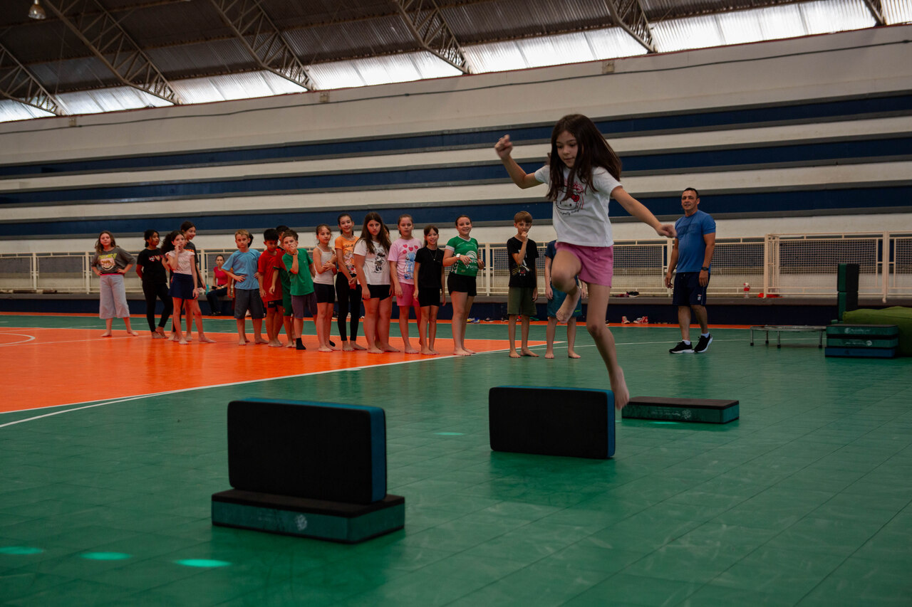 O professor Allan Fontana Coutinho da Silva, idealizador do projeto, destaca que os saltos fazem parte de diversas modalidades esportivas e contribuem significativamente para o desenvolvimento físico dos estudantes. Quando se fala em saltos, a gama é muito grande. Eles estão presentes em várias modalidades. Aqui, trabalhamos principalmente os membros inferiores, força explosiva e dinâmica, além da interação social e do prazer de brincar, explica.
