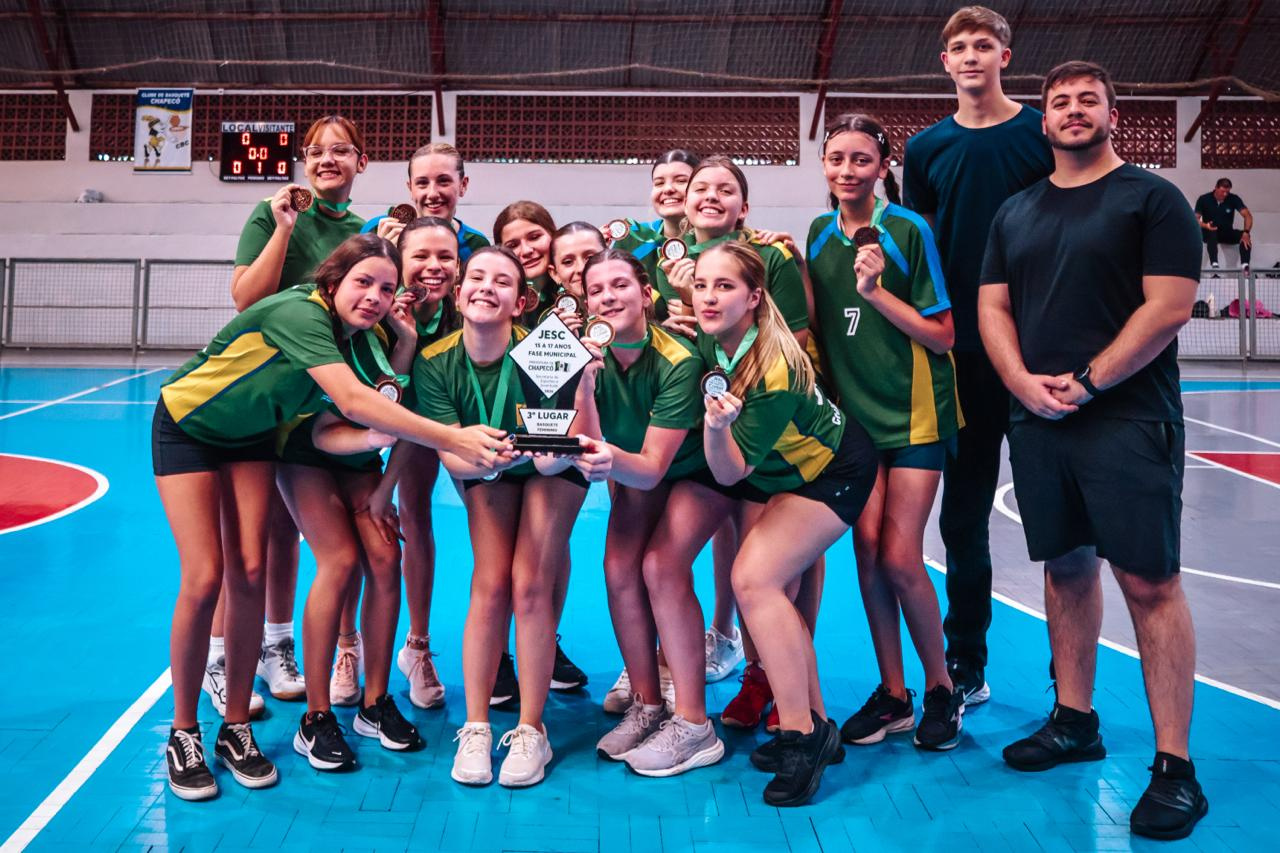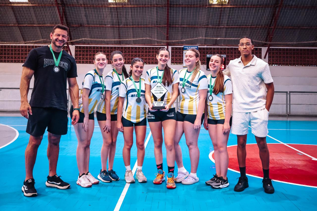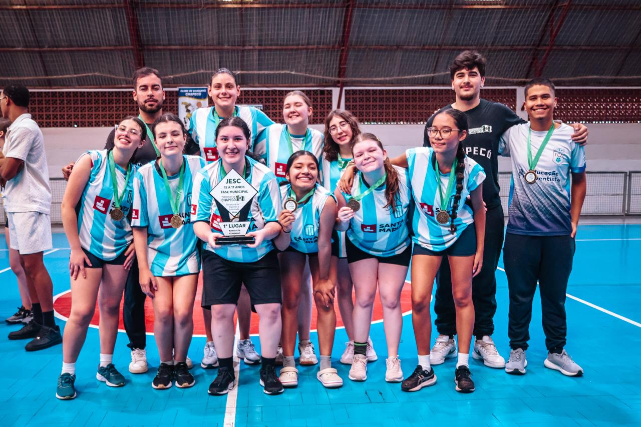 Nesta terça-feira (14), foram definidas as campeãs do basquete feminino na fase municipal dos JESC, na categoria de 15 a 17 anos. O Colégio Adventista conquistou o título ao vencer suas duas partidas e levantar o troféu.