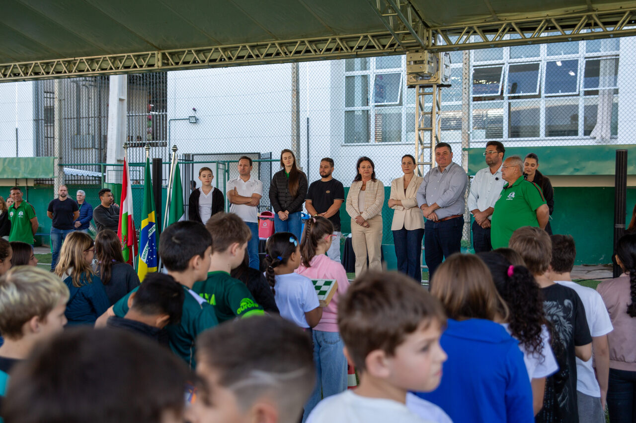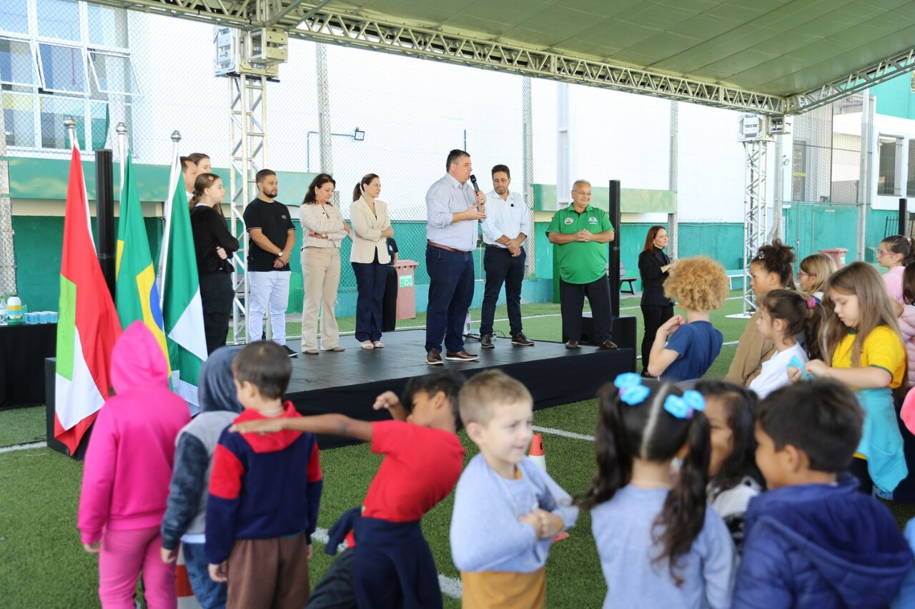 A manhã desta quarta-feira,15, foi marcada pela emoção na cerimônia de abertura da primeira edição dos Jogos Escolares da Rede Municipal de Ensino de Chapecó. O evento é promovido pela Prefeitura de Chapecó, por meio da Secretaria de Educação e Secretaria de Esportes e Juventude, foi realizado no Centro Tecnológico de Inovação, Educação e Esporte Carlos Alberto Lima da Silva - Betinho, reunindo estudantes de diferentes idades com o objetivo de incentivar o esporte, promover a integração e fortalecer valores como cooperação, respeito e superação de desafios.