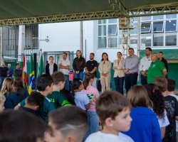 O momento especial também contou com a participação da atleta chapecoense Daniele Campigotto, que realizou o juramento oficial ao lado dos estudantes. Minha paixão pelo esporte começou ainda na escola. Foi na EBM Fedelino Machado dos Santos que um professor de Educação Física percebeu meu potencial e me incentivou a seguir nesse caminho. É muito gratificante ver tantos estudantes participando dos jogos escolares, tenho certeza que esse pode ser o início da trajetória de um atleta de sucesso, assim como foi comigo, destacou Daniele.