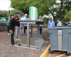 A gerente de Resíduos Sólidos da Prefeitura de Chapecó, Graciela Heckler, disse que buscou informações em Porto Alegre e agora os gaúchos vieram conhecer o modelo catarinense. Ela informou que além da unidade elétrica, outras 21 estruturas subterrâneas estão espalhadas pela cidade, principalmente na área central. Além do material ser mais resistente a lixeira evita que pessoas acessem e espalhem o lixo, além de esteticamente ser mais bonita.