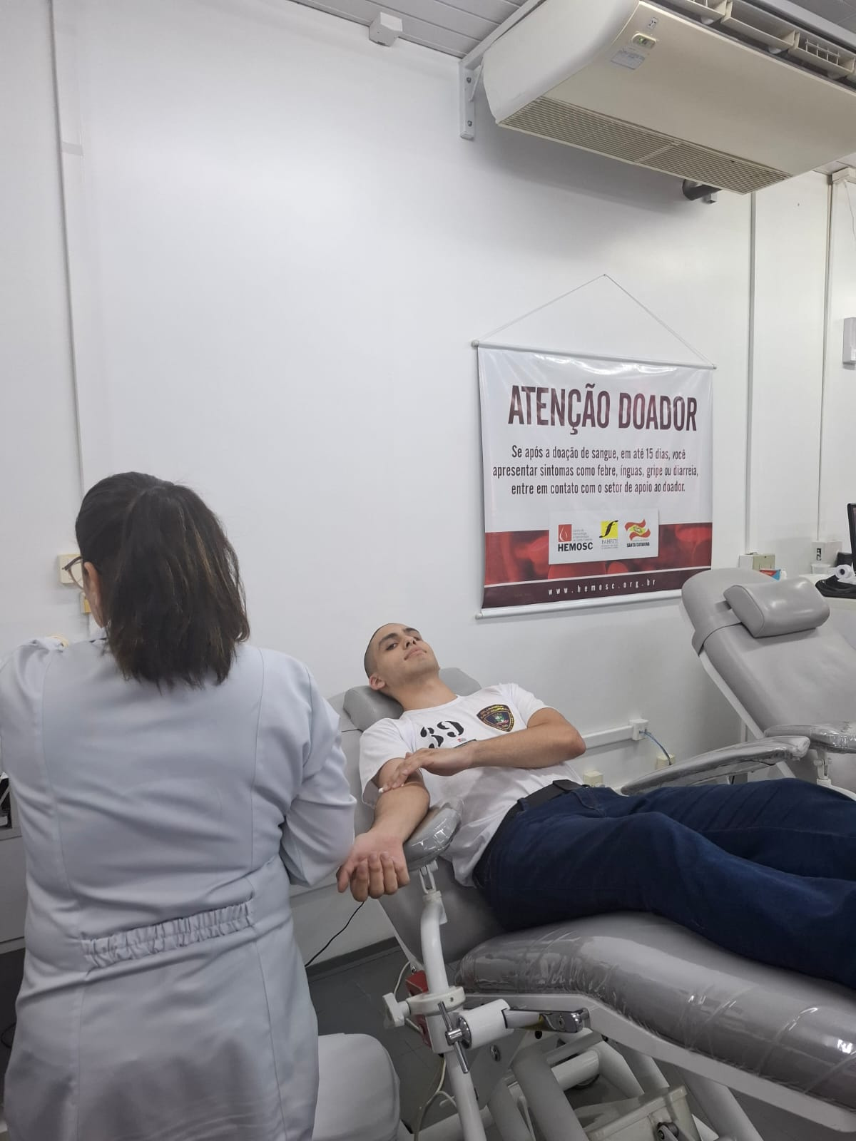 Alunos da 5a turma do Curso de Formação da Guarda Municipal realizaram na tarde deste sábado (18) uma ação de solidariedade, doando sangue para o Hemosc de Chapecó. De acordo com o comandante da Guarda, Luiz Antônio Stobe, 44 alunos foram até o local.