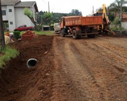 - Implantação de rede pluvial, reparos e manutenção de tubulação, galerias e bocas de lobo nas regiões dos Bairros Santa Maria, Esplanada e Aeroporto;