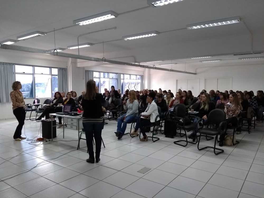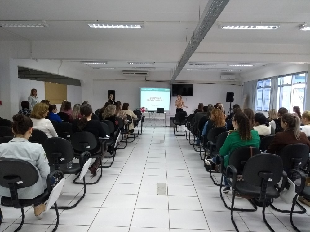 As palestrantes foram Fransieli Sgnaulin e Silvana Hoffmann Velasques Moreira, Assistentes Sociais INSS agência de Chapecó.