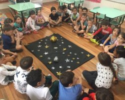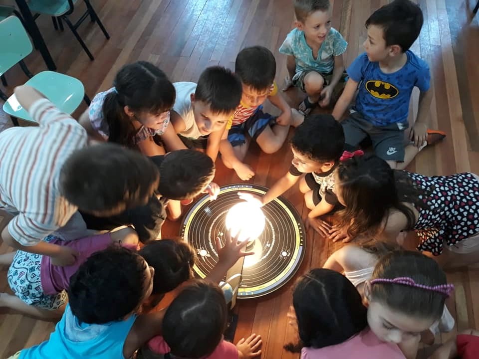 Conhecer o sistema solar, planetas, estações do ano e o lugar em que vivemos, para que os alunos compreendam essa imensidão que é o Planeta Terra. Este foi o projeto desenvolvido com as turmas de pré-escolar de 5 e 6 anos do Ceim Pequenos Heróis do Bairro Efapi. O objetivo era desenvolver o conhecimento sobre os planetas instigando a curiosidade das crianças a fim de que consigam compreender como é o funcionamento do sistema solar e quais as influências das estações do ano na vida das pessoas.