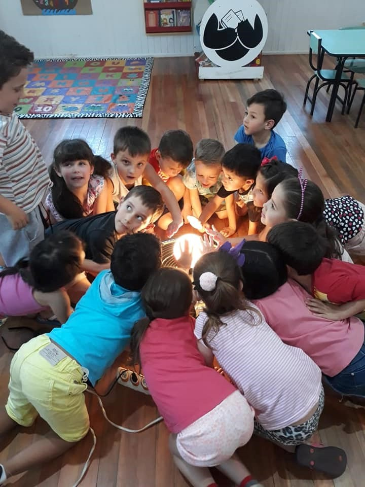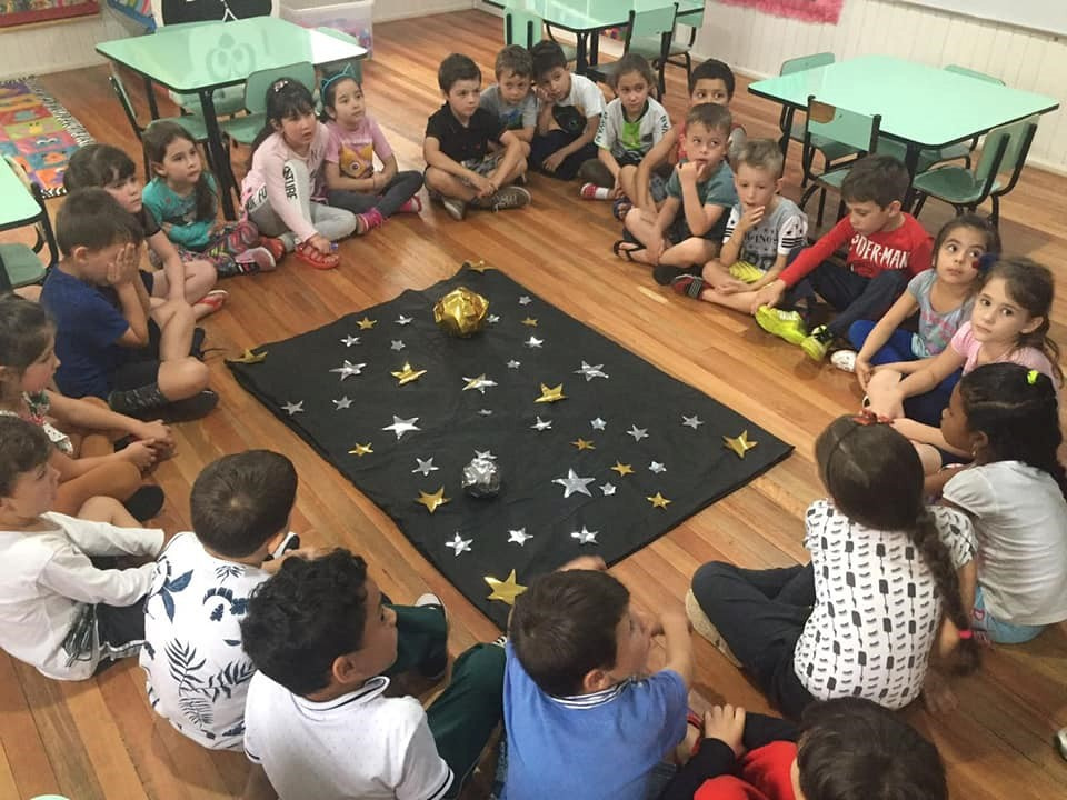 As atividades iniciaram com roda de conversa e apresentação de imagens sobre as diferentes estações do ano, bem como, as vestimentas adequadas e as mudanças que ocorrem em cada estação: flores, chuva, calor, frio etc. Depois disso, as crianças foram para a área externa do CEIM para observar o céu, ressaltando o que conseguiram ver durante o dia. Para finalizar esse projeto, foi realizada uma noite de observação dos planetas, convidando o astrônomo amador e professor Diego de Bastiani que realizou uma palestra sobre o sistema solar. Em seguida com telescópio, as crianças puderam observar a Lua, Vênus, Marte, Júpiter, Saturno, Aglomerado de estrelas da borboleta, Constelação de Sagitário, Escorpião e também o Cruzeiro do Sul. As famílias acompanharam seus filhos e também realizaram a observação.