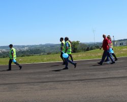 A Administração Municipal realizou na manhã desta terça (30) uma inspeção coletiva na pista de pouso e decolagem do Aeroporto Municipal Serafim Enoss Bertaso. A ação que acontece de forma rotineira, desta vez contou com a participação de aproximadamente 50 pessoas entre funcionários do aeródromo, órgãos de segurança pública e companhias aéreas que atuam no local.