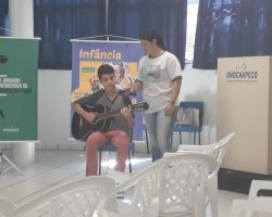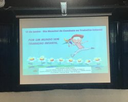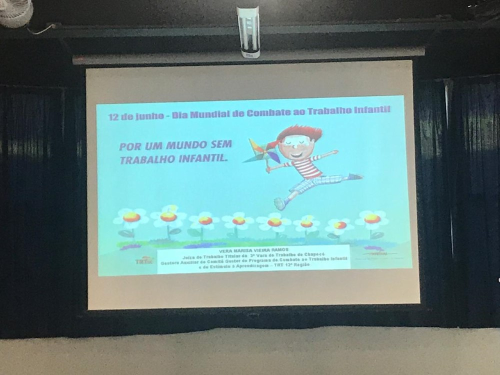 Carolini participou como palestrante, iniciando as atividades com a paródia e a poesia sobre o tema Trabalho Infantil que foram elaboradas pelas crianças e adolescentes dos Centro de Convivência e Fortalecimento de Vínculo. Ela falou sobre as ações feitas pelo PETI, também expôs dados sobre denúncias e cotas para jovens aprendizes do nosso município. Ela explicou que no município de Chapecó existe um Plano de ação de Erradicação do Trabalho Infantil, desenvolvido pela coordenadora do (PETI) e destinado às crianças e adolescentes localizadas no município que estão enfrentando a problemática do trabalho infantil. Dentro deste plano estão várias ações de enfrentamento ao trabalho infantil, dentre eles foi desenvolvido o projeto Trabalho Infantil Rouba a Infância que utilizamos uma cartilha sobre o assunto.
