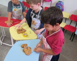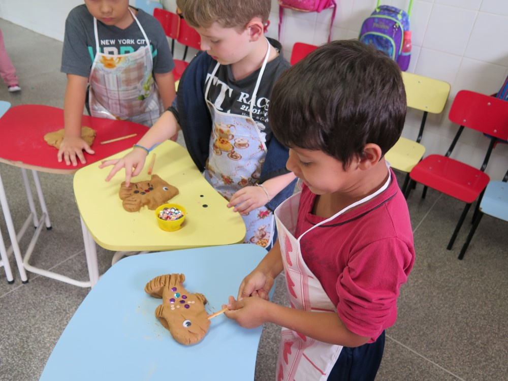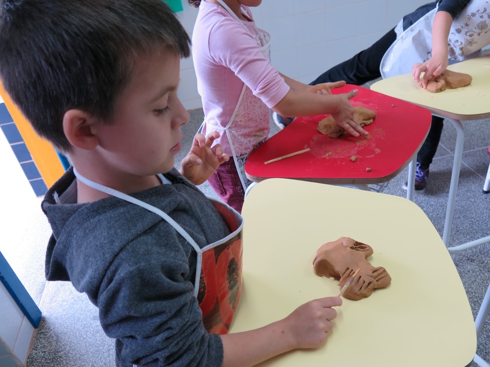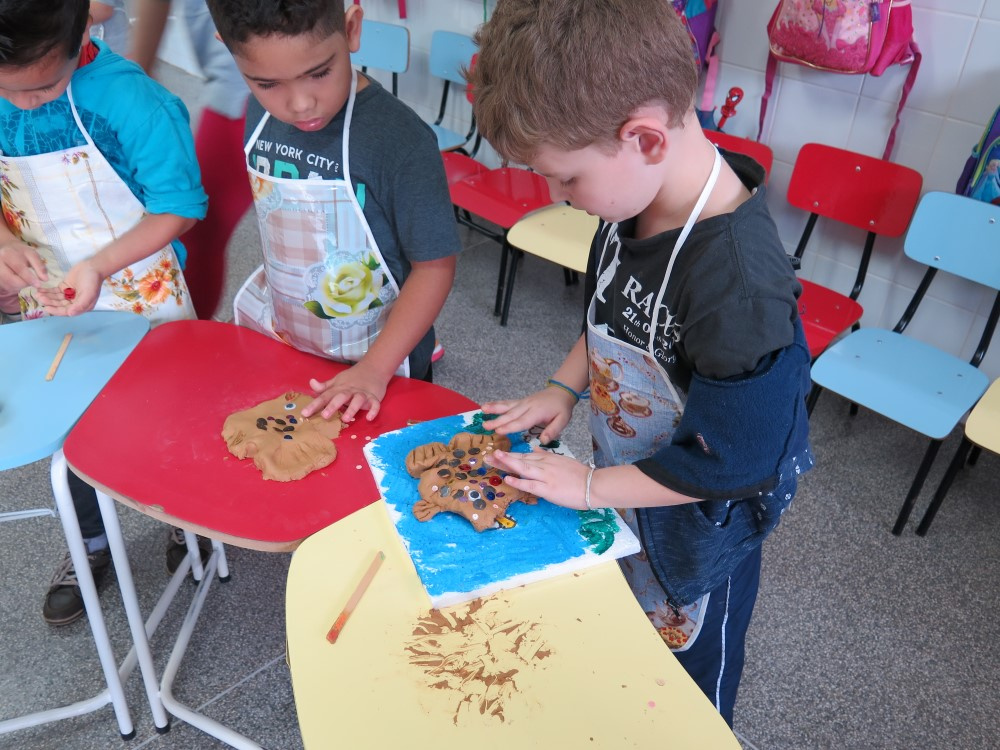 Depois disso, com rolo de papel higiênico, caixinhas de papel e muita criatividade, as crianças criaram esculturas inspirados no artista Pablo Picasso, fazendo a releitura da escultura O gato do artista recifense Romero Britto. Os pais também participaram das atividades fazendo em casa a massinha de modelar. Com a massinha já pronta, as crianças construíram paisagens e animais. Também fizeram com argila a modelagem de um peixe e colocaram as lantejoulas para fazer as escamas. O projeto revelou pequenos grandes escultures.