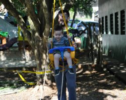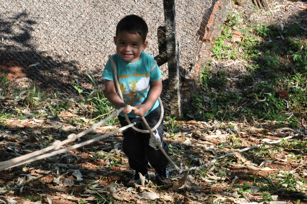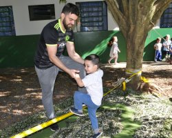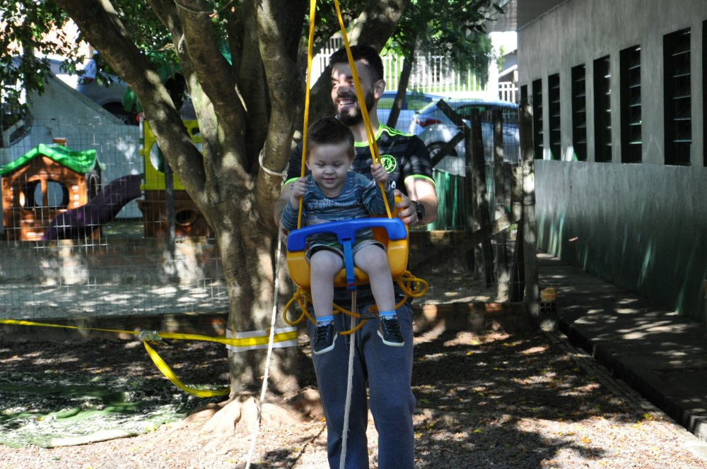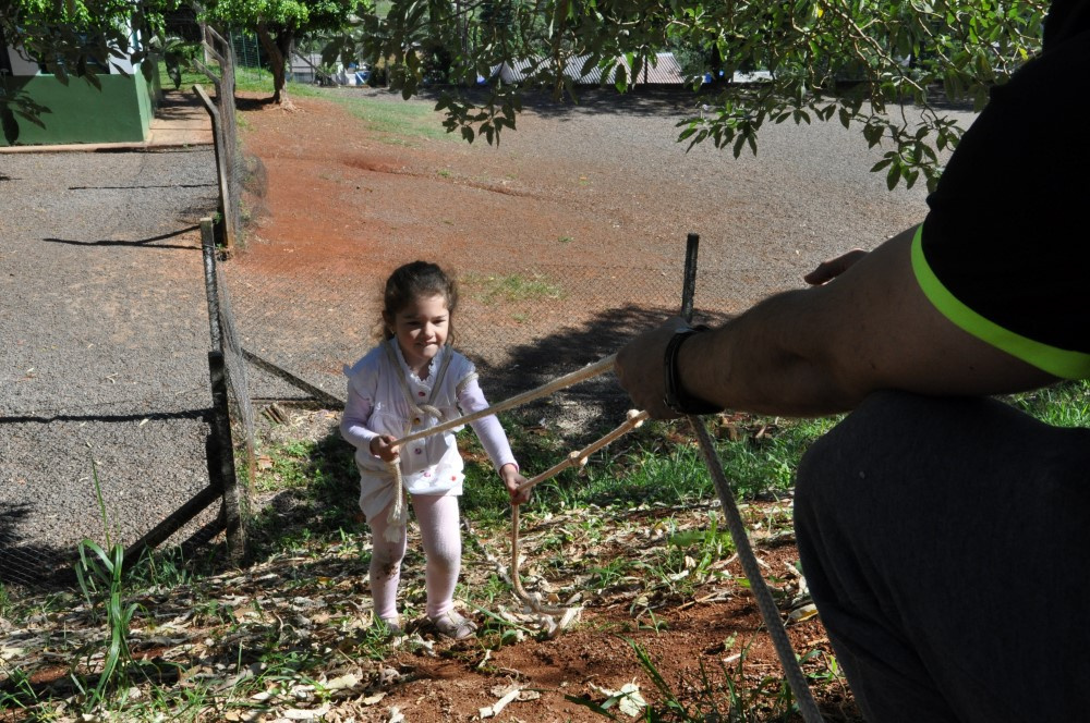O aluno Kauian Scastizini, de 4 anos, gostou das brincadeiras. Eu adorei brincar de tirolesa. Eu não tenho medo. Sou corajoso. Eu quero ir muitas vezes de novo. A pequena Ariely Triches, de 3 anos também foi corajosa. Eu gostei de ficar se equilibrando na fita. O professor me ajuda.