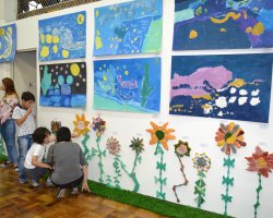 Valorizamos sempre as formas de representação de cada criança, procuramos preservar o seu olhar, seu traço, respeitando até onde sua percepção alcança, como proporção e perspectiva, por exemplo. A ideia da escola não é formar artistas, mesmo não descartando essa possibilidade, mas oportunizar uma formação humanizada a partir do contato com a arte, explica a Diretora da Escola de Artes, Emanoélli Capello.