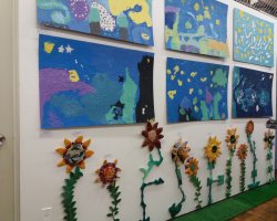 Utilizando especificamente como referência as obras Os Girassóis, A Noite Estrelada e O quarto, os alunos utilizaram em seus trabalhos muita criatividade e diferentes materiais como recortes, colagem, sucata, tintas, massa corrida, plástico e argila. A produção passou por um longo processo de observação, desenvolvimento a partir de formas lúdicas e valorização do olhar de cada aluno.