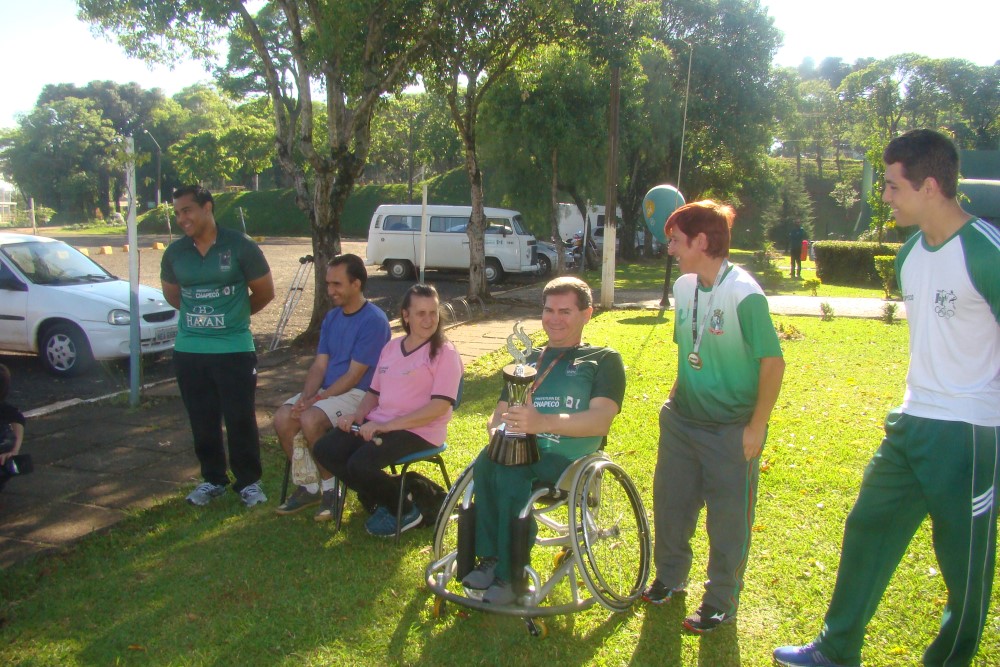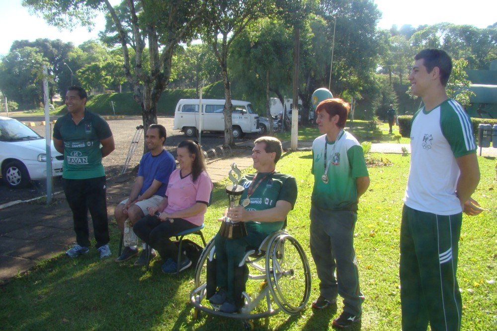 Outra entidade que se destaca e está na disputa do troféu é a de Goalball. Este ano, formada pelas atletas Zulmara, Milene e Sinéia bateu a favorita Blumenau na final do PARAJASC, vencendo com folga. Os atletas, mais o técnico Júlio César Silva do Handebol se reuniram nesta sexta pedindo que a população vote em favor das modalidades de Chapecó.