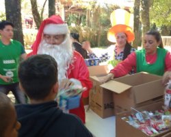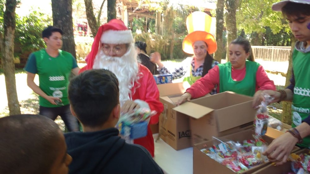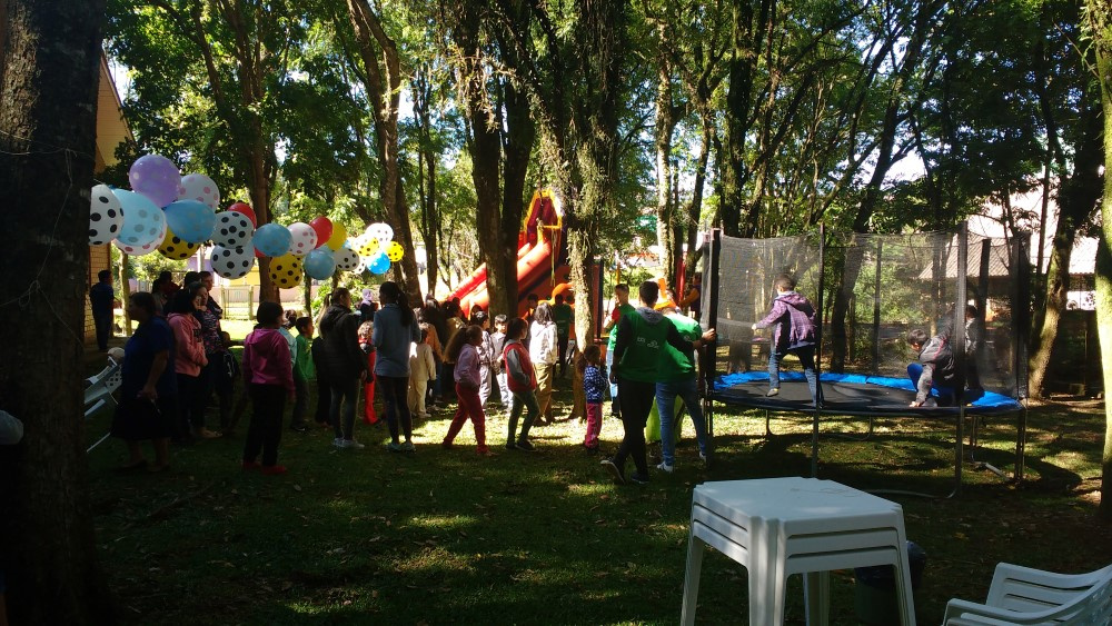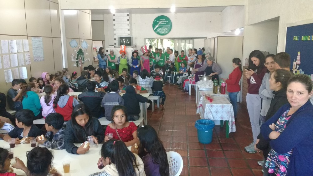 As crianças e adolescentes que participam das atividades no Serviço de Convivência e Fortalecimento de Vínculos do bairro Seminário, participaram de uma Festa de Natal na segunda-feira (19). A confraternização alusiva ao Natal, foi direcionada para crianças e adolescentes participantes dos Centros de Convivência localizados na Aldeia Condá, Bairro Santo Antônio e Bairro Seminário. A atividade contou com a parceria da Fundação Aury Bodanese/Aurora Alimentos, que ofereceu atividades de lazer, entretenimento, lanches e doces, além da chegada do Papai Noel. Participaram das atividades aproximadamente 140 crianças e adolescentes.