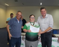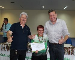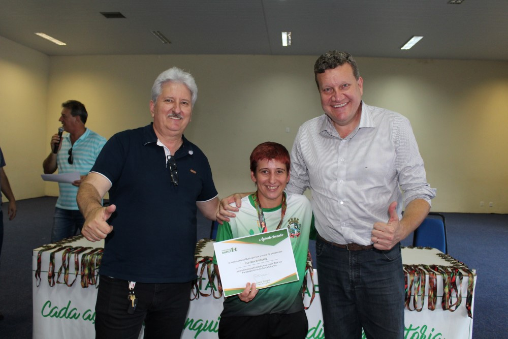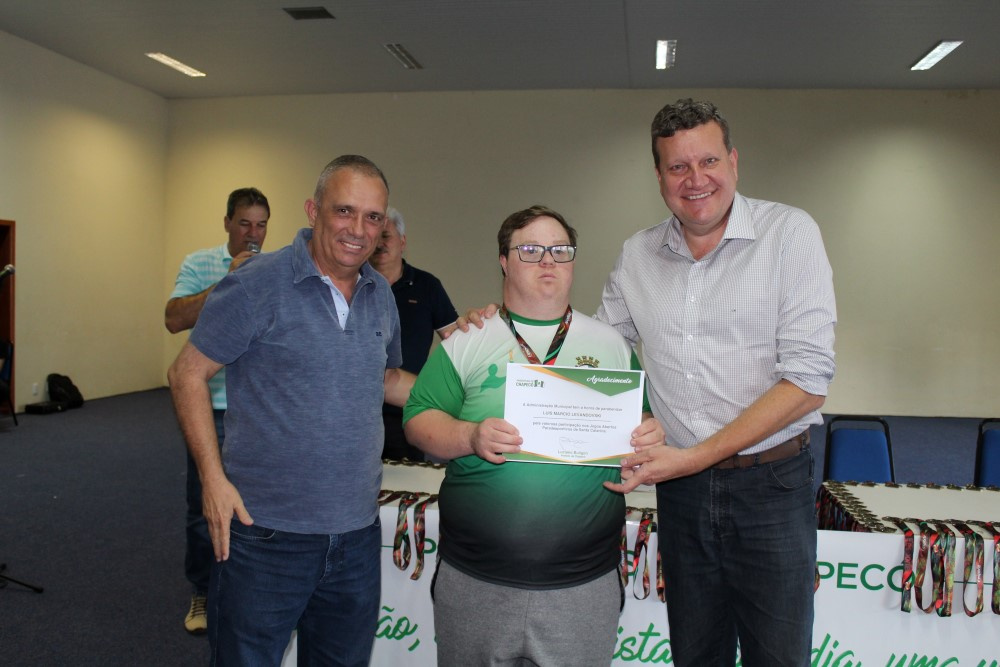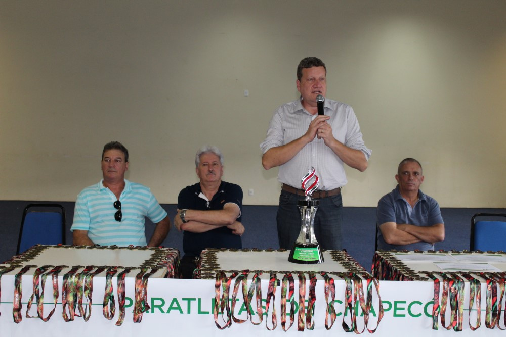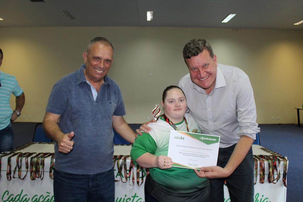 Com 21 pontos, 92 medalhas e 20 troféus, Chapecó conquistou a segunda colocação geral nos Jogos Paradesportivos PARAJASC 2018, que aconteceu em Jaraguá do Sul. Os atletas que conquistaram essa colocação foram homenageados pela Administração Municipal nesta segunda-feira (26). A atividade reuniu atletas, dirigentes, técnicos e familiares em um ato no Centro de Cultura e Eventos Plínio Arlindo De Nes. Participaram o Prefeito de Chapecó, Luciano Buligon, o Secretário de Juventude, Esporte e Lazer, Ivan Carlos Agnoletto, o vereador licenciado Ivaldo Pizzinatto e equipe da Secretaria de Juventude, Esporte e Lazer.