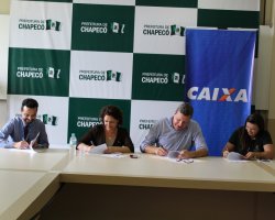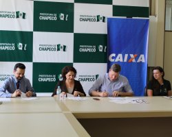 Chapecó, 30/11/2018, sexta-feira - Um trabalho social no Loteamento Expoente (que possui 470 unidades, no âmbito do Programa Minha Casa Minha Vida) será realizado através de parceria entre a Prefeitura de Chapecó e a Caixa Econômica Federal, com recursos de R$ 239.397,46 (duzentos e trinta e nove mil, trezentos e noventa e sete reais e quarenta e seis centavos) oriundos de recursos do Fundo de Arrendamento Residencial (FAR). A assinatura do Convênio para Execução do Trabalho Social foi realizada nesta sexta-feira (30) e contou com a participação de moradores, representantes da Caixa e Prefeitura.