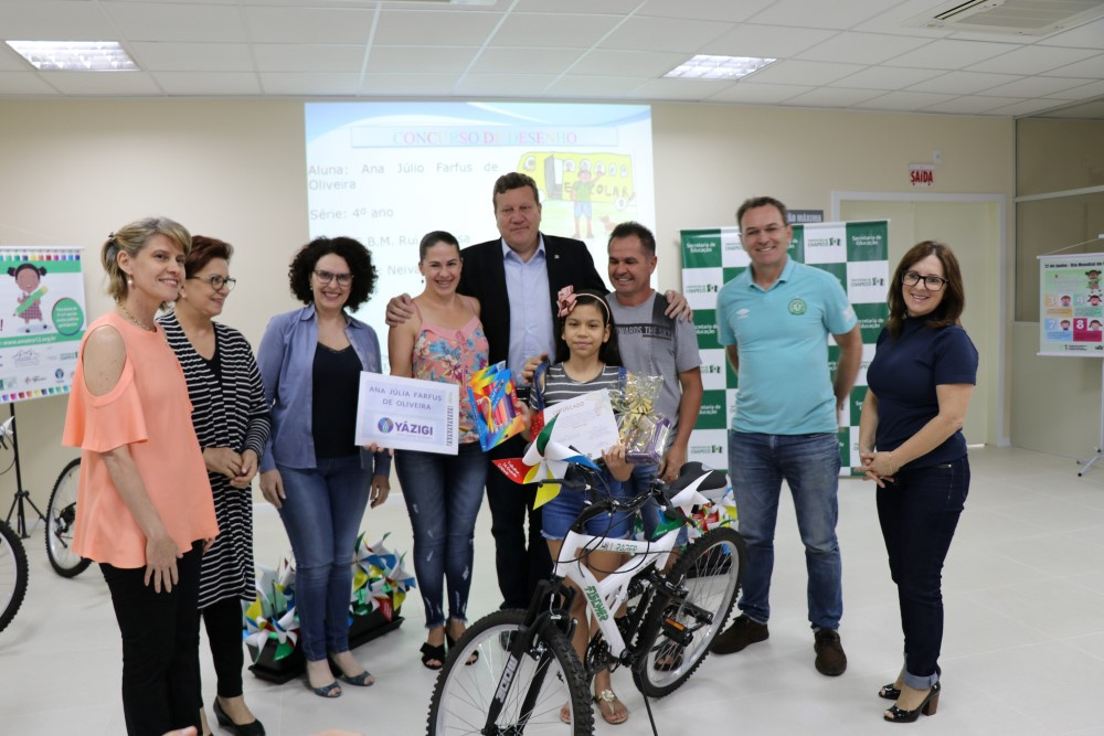 Os premiados foram: 1º lugar: Isabela Lorrainy Santim da Escola André Antônio Marafon; 2º lugar: Ana Julia Farfus de Oliveira da Escola Básica Municipal Rui Barbosa; 3º lugar: Eduarda Junior dos Anjos da Escola Básica Municipal Severiano Rolin de Moura. As três estudantes receberam como premiação, uma bicicleta, uma caixa de lápis coloridos, um tablet institucional pedagógico oferecido pela Prefeitura de Chapecó, 4 ingressos para assistir ao jogo da Chapecoense X São Paulo que ocorreu no dia 02/12, oferecido pela Associação Chapecoense de Futebol. Além destes prêmios, a estudante Ana Júlia Fárfus recebeu também uma bolsa de estudos de dois semestres da escola de idiomas Yázigi.