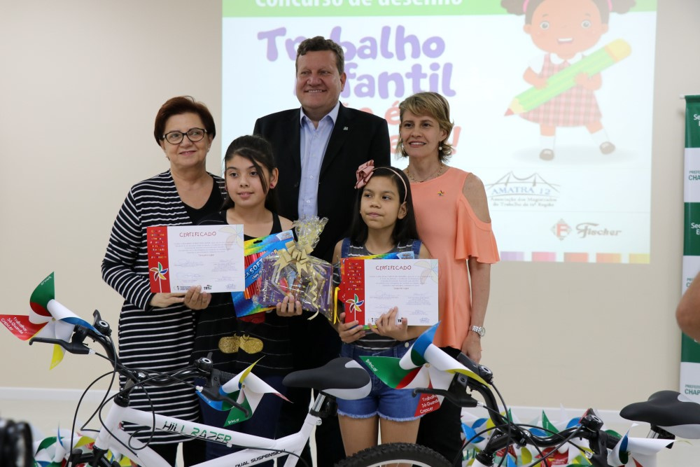 Chapecó, 04/12/2018, terça-feira O Poder Judiciário, por meio da Justiça do Trabalho, 12ª Região em parceria com a Prefeitura de Chapecó, por meio da Secretaria de Educação, realizou na terça-feira (04) a premiação aos participantes do projeto: Trabalho Infantil não é Brinquedo que teve por finalidade esclarecer dúvidas, formar replicadores e transformar este assunto em aprendizagem nas escolas. A atividade contou com a participação dos professores, alunos, pais e familiares.