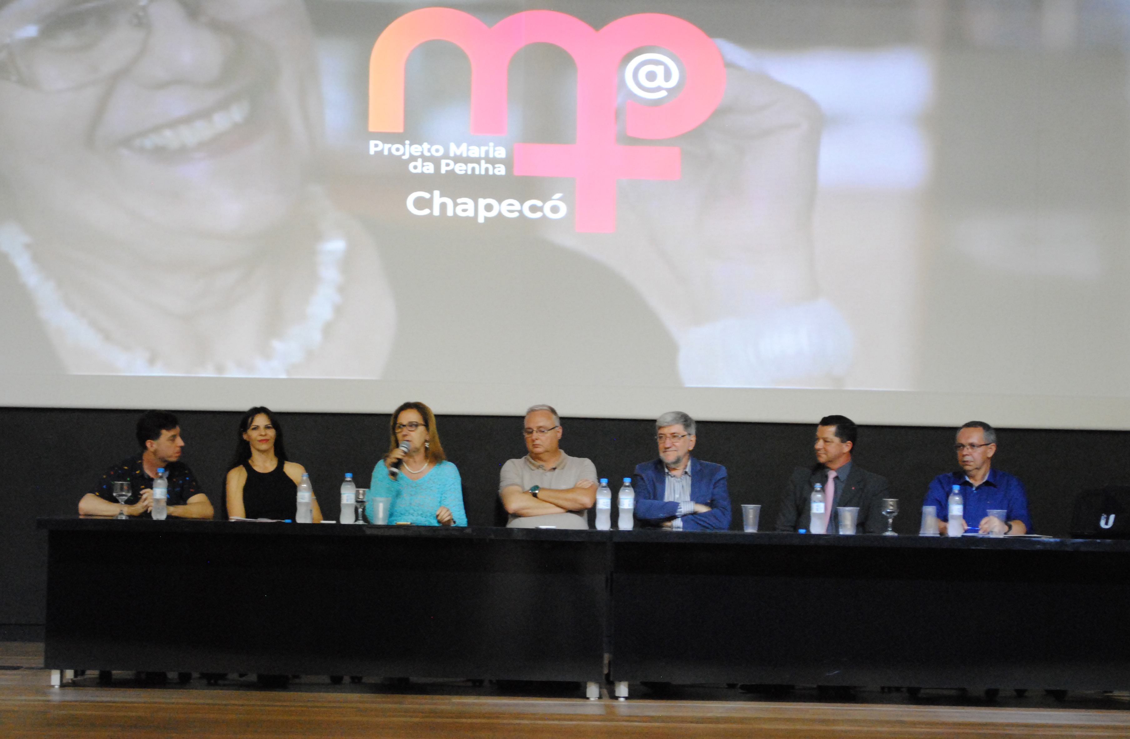 Chapecó, 20 de dezembro de 2018 - quinta-feira - Três instituições da comunidade fizeram o lançamento de cinco soluções tecnológicas para auxiliar na prevenção e no enfrentamento da violência contra a mulher. Os instrumentos têm a participação da Prefeitura de Chapecó, por meio da Secretaria de Assistência Social, dos cursos de Ciência da Computação, Design e Sistemas de Informação da Unochapecó e da Comissão da Mulher Advogada, da OAB - Subseção de Chapecó.
