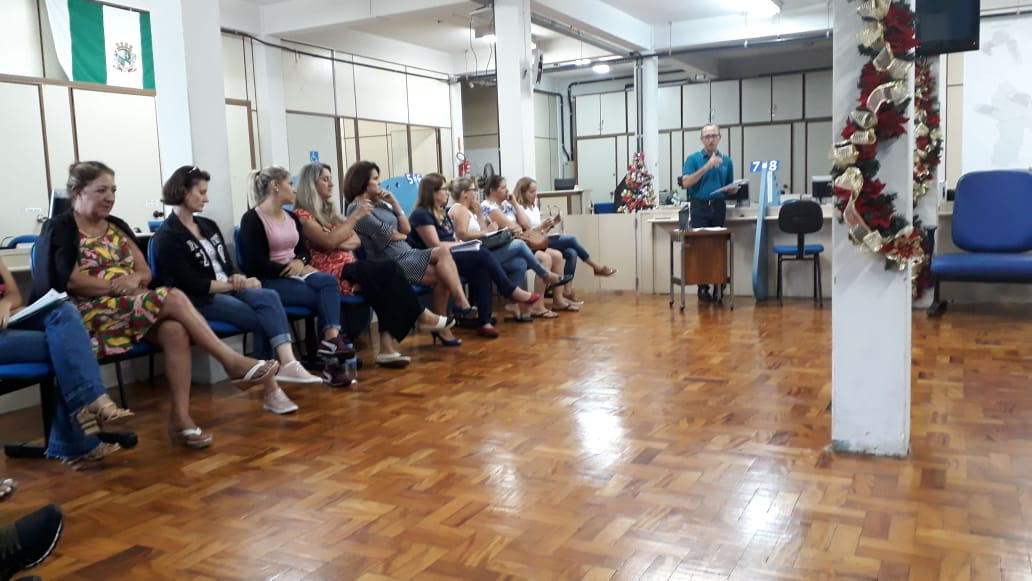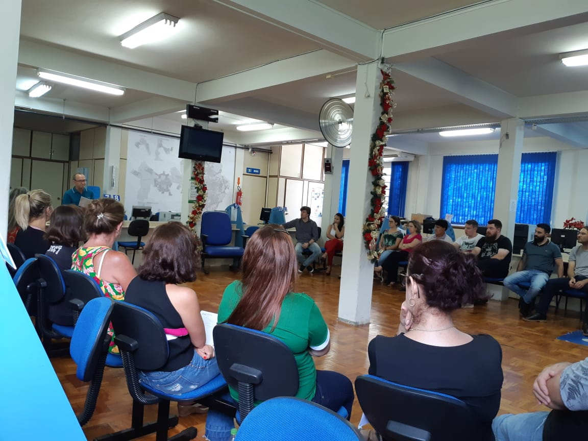 Chapecó, 04/01/2019, sexta-feira - Trinta e um servidores da Diretoria de Tributos Imobiliários, da Secretaria de Fazenda (SEFAZ), estiveram reunidos nesta sexta-feira, das 13h às 16h10. Pauta: esclarecimentos referentes aos tributos municipais, especialmente o IPTU 2019, e os procedimentos relacionados à implantação dos novos sistemas no setor. O encontro foi coordenado pelo Diretor de Tributos Imobiliários, Dirceu Miotto, e pela assessora, Janeta Granella.