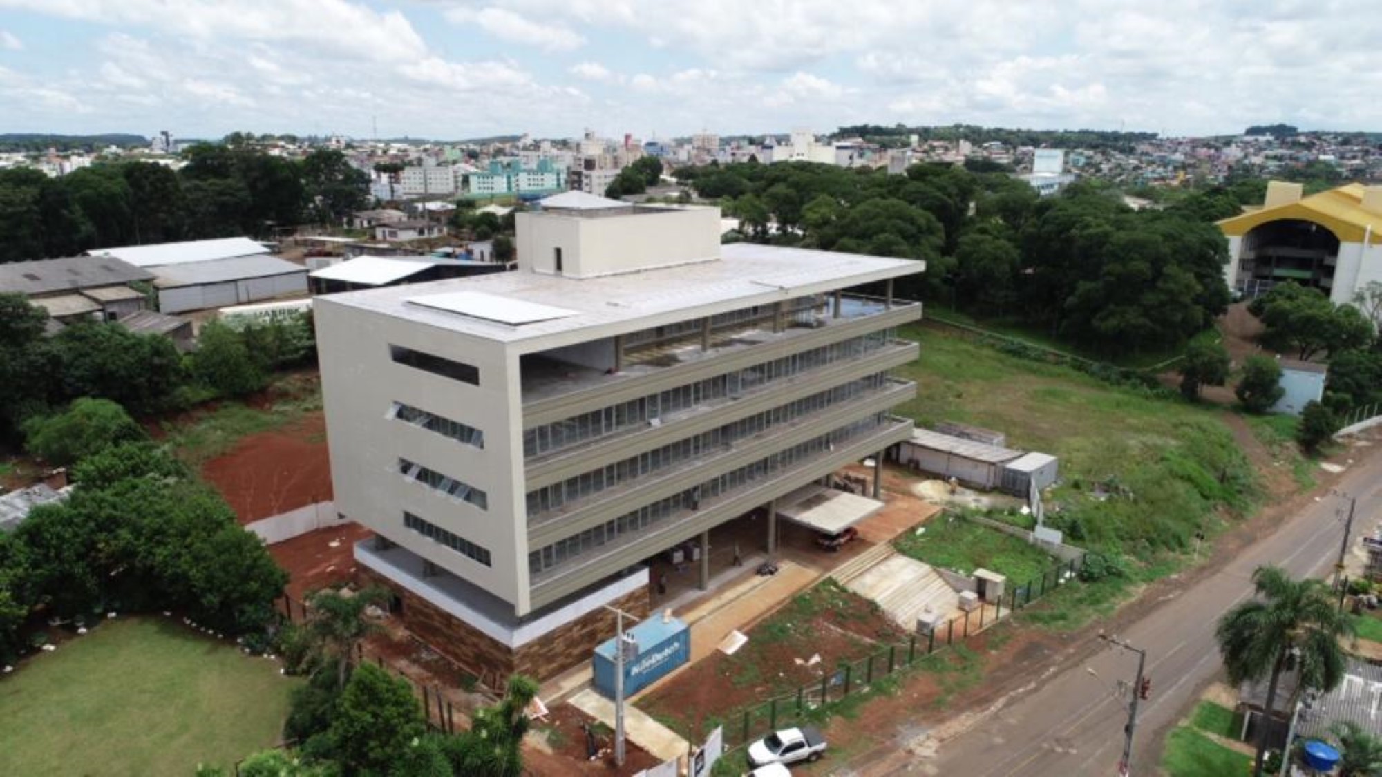 Neste momento, os serviços estão na fase final, restando 50% da parte elétrica, climatização, forros, pintura, esquadrias de vidro, instalação de elevador e paisagismo. A expectativa é entregar a obra no mês de agosto, durante as comemorações dos 102 anos de Chapecó.