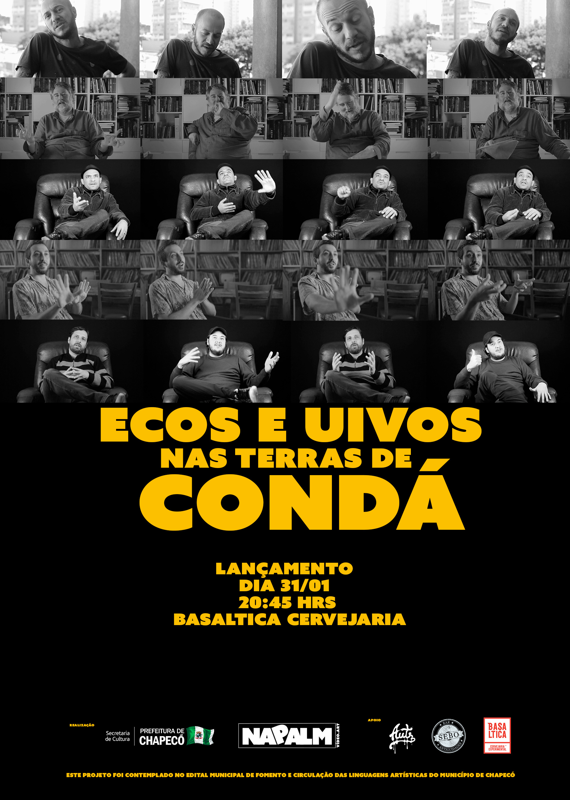 Será lançado nesta quinta-feira, 31 de janeiro, às 20h45 na Basáltica, Rua Uruguai, 135D, no Centro, o documentário Ecos e Uivos na Terra de Condá. O filme, de média metragem, conta a trajetória musical de Chapecó com figuras que marcaram o cenário em diferentes épocas.