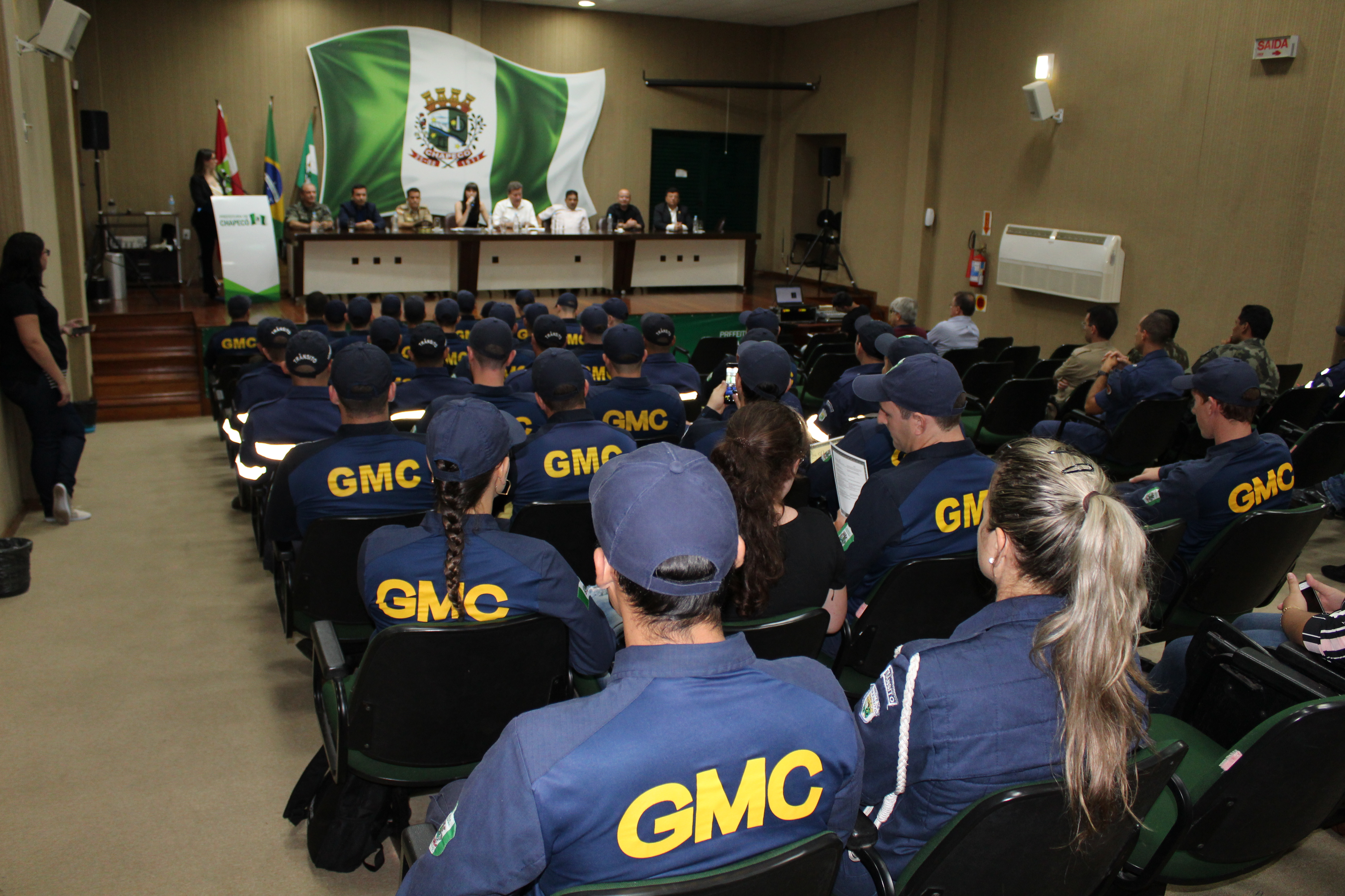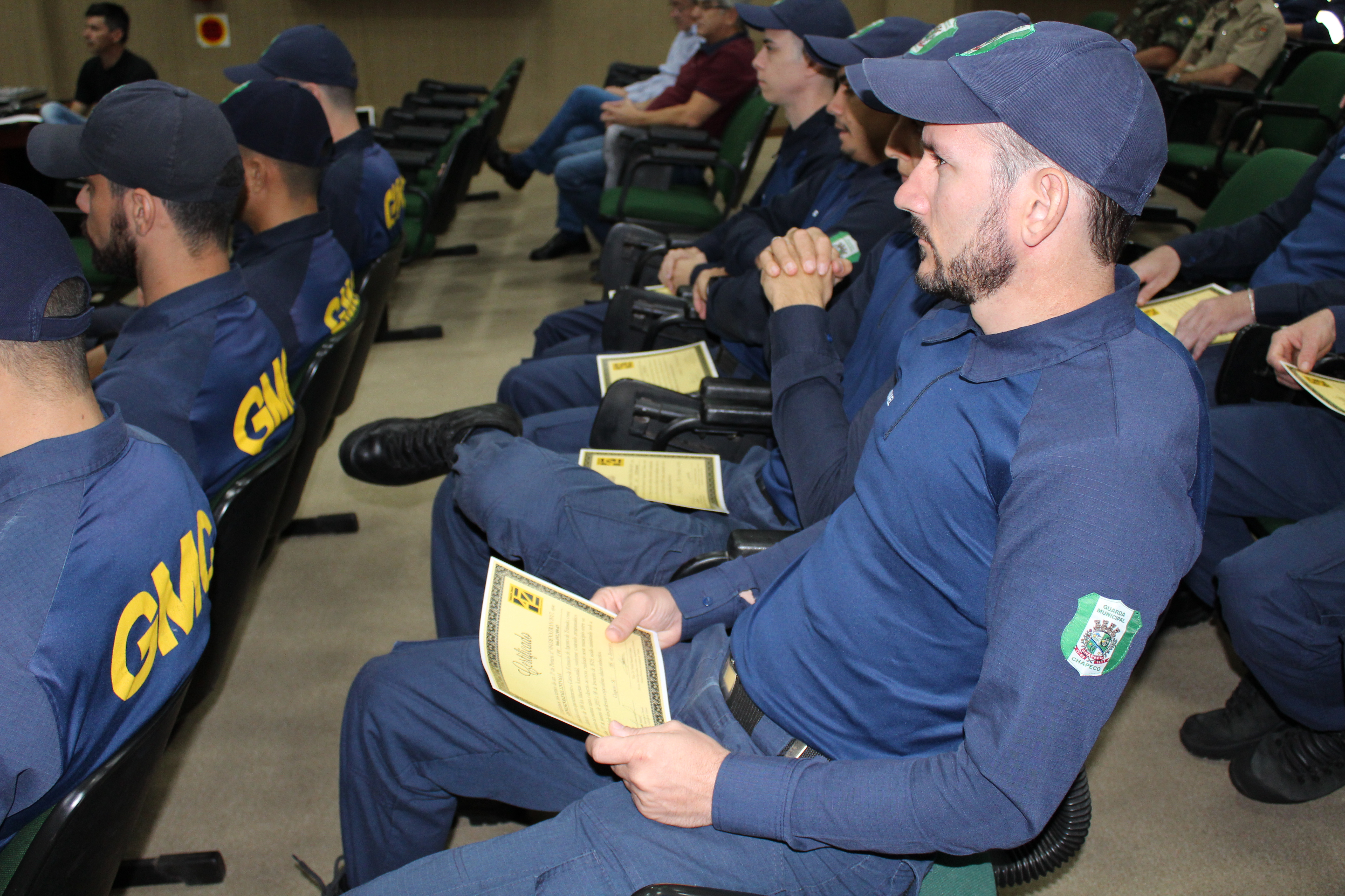 A Administração Municipal, por meio da Secretaria de Defesa do Cidadão e Mobilidade realizou na manhã desta sexta-feira (08) a solenidade de Formatura do Curso de Formação para Agentes de Autoridade de Trânsito. Ao todo trinta e cinco Agentes de Trânsito (07) e Guardas Municipais (28) participaram do curso que teve duração de 200 horas/aula e foi ministrada pela empresa Savedra e Amaral Trânsito Brasil, vencedora do processo licitatório. O curso contou com aulas teóricas sobre direito, operações de trânsito, psicologia, relacionamento interpessoal e também práticas pelas ruas de Chapecó.