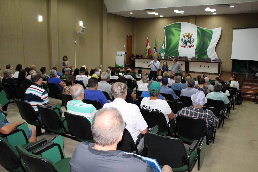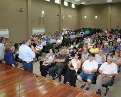 Chapecó, 12/02/2019, terça-feira A Diretoria Geral dos Idosos de Chapecó reuniu representantes dos 71 Grupos de Idosos de Chapecó para prestação de contas das atividades. Participaram da reunião de trabalho integrantes da Diretoria Geral dos Idosos, membros dos grupos de idosos de Chapecó, Secretária de Assistência Social Ulda Baldissera, Vice-prefeito Elio Cella e o prefeito Luciano Buligon.