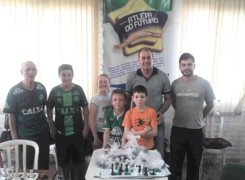 As equipes de Xadrez do Projeto Atleta do Futuro dos polos Zélia Scharf, Vila Mantelli, Padre José de Anchieta, André Marafon e Ivo Silveira receberam novos materiais esportivos. Os 20 kits, compostos por tabuleiros e peças serão usados para as disputas e treinamentos das equipes. Na entrega simbólica que aconteceu na Secretaria de Juventude, Esporte e Lazer, participaram o Secretário de Juventude, Esporte e Lazer Itamar Agnoletto, os professores Marco Antônio Barbosa e Willian Quevedo Naissinger e representantes de atletas.