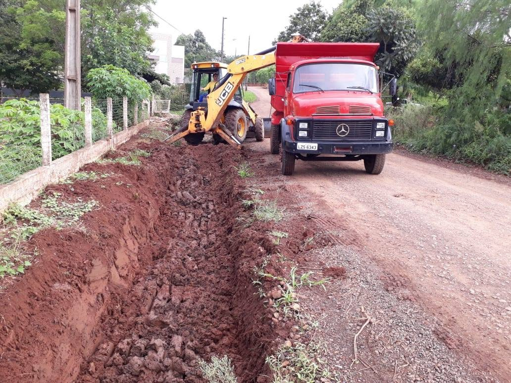 - Implantação de rede pluvial, reparos e manutenção de tubulação, galerias e bocas de lobo nos Bairros Santa Maria, São Pedro, Passo dos Fortes e Maria Goretti;