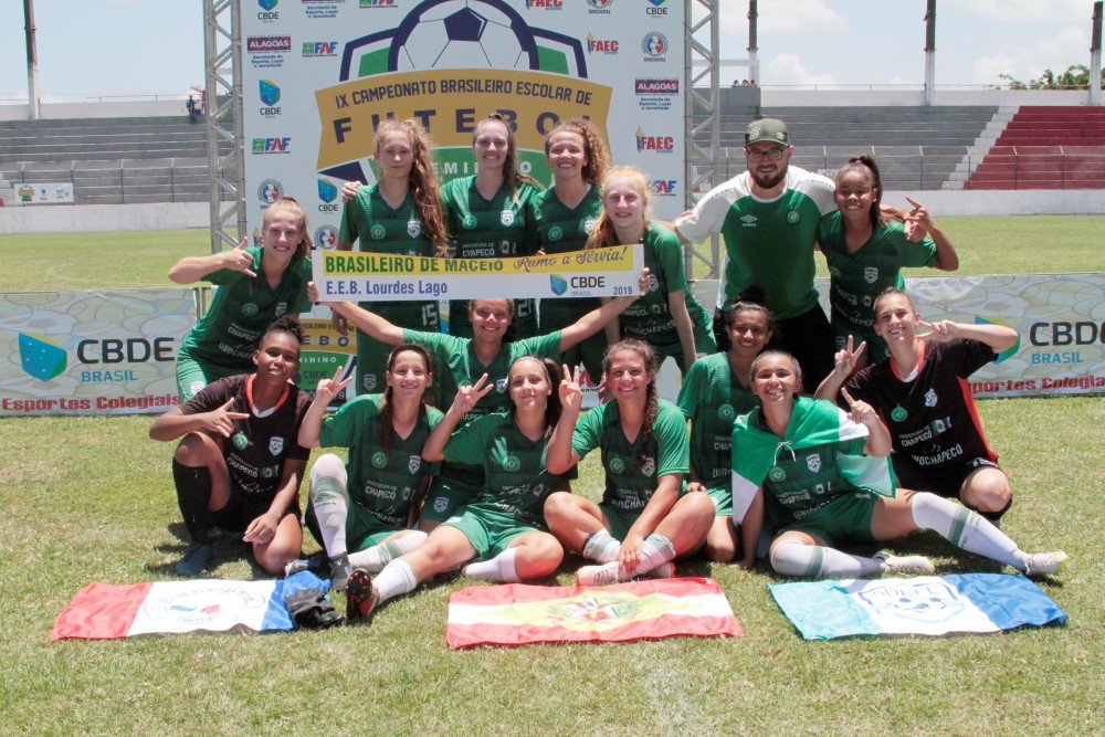 Chapecó, 28/02/2019, quinta-feira Na quarta-feira (27), debaixo de calor intenso em Maceió (AL), ocorreu a grande final do Campeonato Brasileiro de Futebol Escolar Feminino. O confronto foi no estádio Nelson Peixoto Feijó, o Nelsão, do Corinthians Alagoano. A Chapecoense (Escola de Educação Básica EEB Lourdes Lago), representando Santa Catarina, venceu por 1 a 0 o Auto Esporte (Colégio QI), da Paraíba.