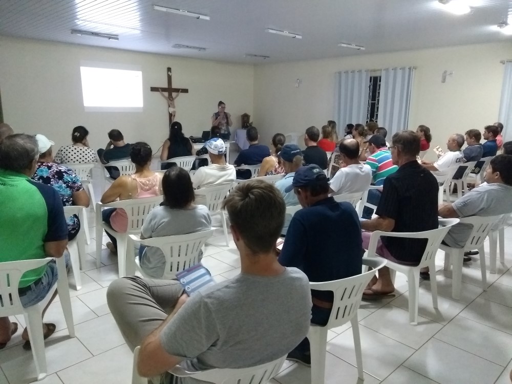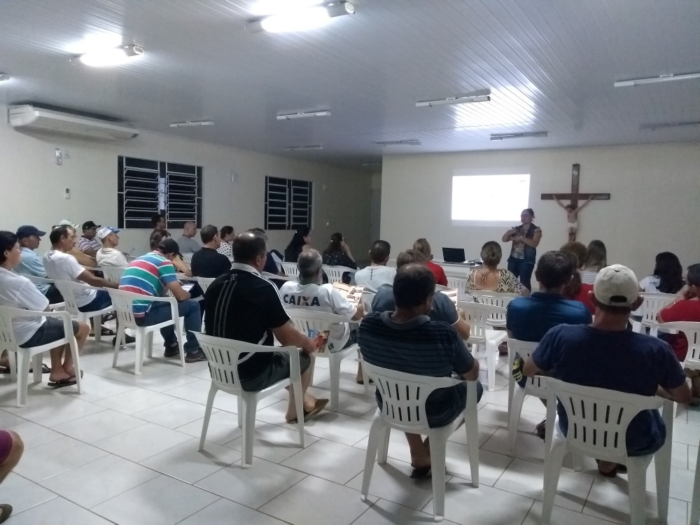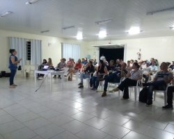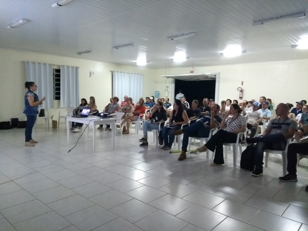 Chapecó, 01/03/2019, sexta-feira Cerca de 40 produtores da comunidade de Sede Figueira, participaram de uma atividade de orientação e esclarecimento sobre a importância e necessidade dos cuidados com a produção do leite e derivados. Participaram da atividade, produtores do Laticínio, equipe do CEREST Centro de Referência em Saúde do Trabalhador e equipe da Epagri. O tema trabalhado foi Brucelose e Tuberculose em Humanos e Brucelose e Tuberculose em Animais. A abordagem foi realizada pelas profissionais Vanessa Nalin, enfermeira da Rede de Atenção Básica da Secretaria de Saúde de Chapecó e pela Médica Veterinária Angelize Hahn Biazus da Prefeitura de Nova Itaberaba, credenciada à CIDASC.