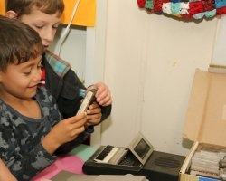 A atividade integrou o projeto No tempo dos meus bisavós, que acontece até a próxima sexta-feira, dia 29/09. Além de ouvirem histórias, eles apreciaram uma exposição com objetos antigos, tudo para que possam conhecer melhor o que era utilizado pelos seus pais, avós e bisavós.