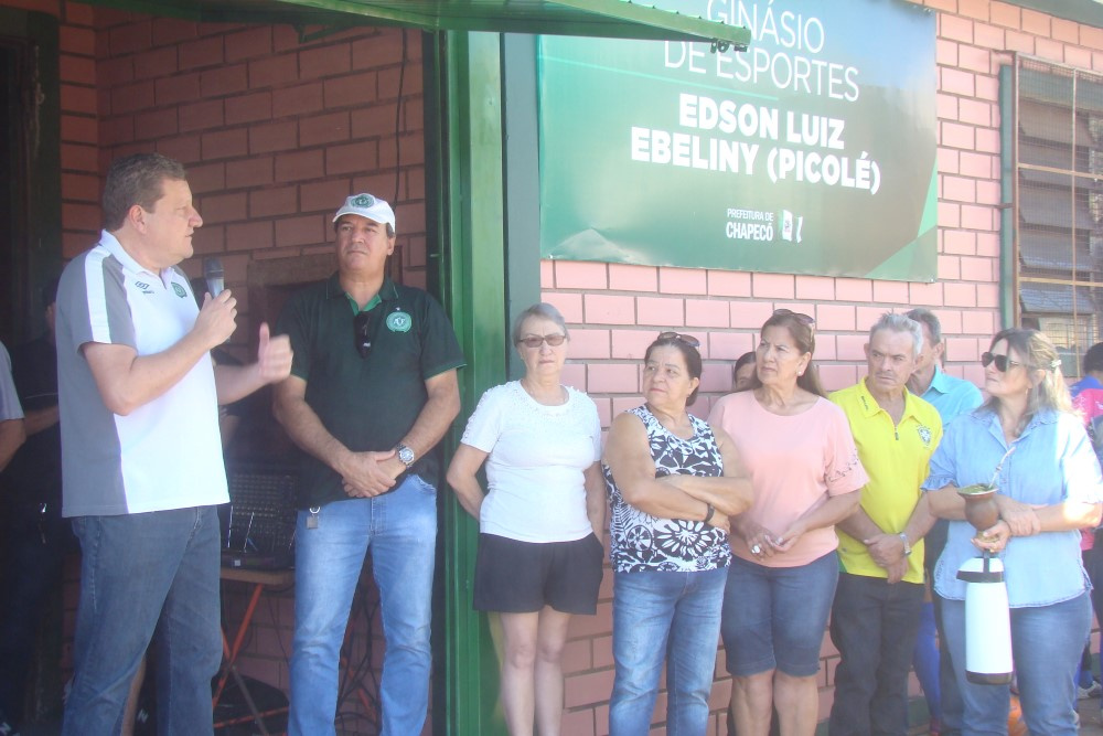 Chapecó, 07/03/2019, quinta-feira Uma parceria entre a Administração Municipal, por meio da Secretaria de Juventude, Esporte e Lazer - SEJEL com a Associação de Moradores, devolveu a comunidade do bairro Passo dos Fortes o ginásio de esportes do bairro. O Prefeito Luciano Buligon fez a entrega do ginásio que recebeu o nome do radialista Edson Luiz Ebeliny, o Picolé, através da Lei 7.150, de 25 de maio de 2018.