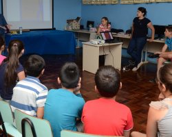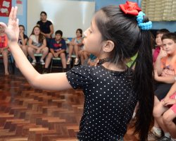 A Escola Básica Municipal Dilso Cecchin, no Bairro Santo Antonio, realizou na tarde de hoje (26), um momento especial voltado ao Dia Nacional do Surdo. Para comemorar a data foram realizadas atividades buscando desenvolver habilidades cognitivas e atitudinais dos alunos da turma da 4ª série, a qual tem uma aluna com surdez.