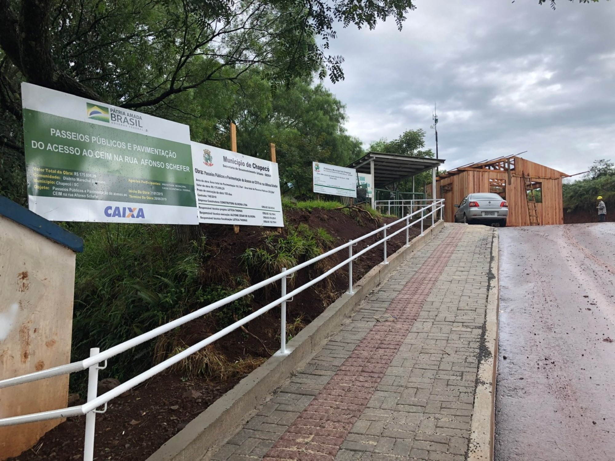 O outro trecho asfaltado foi o acesso ao CEIM Nova Vida, na rua Afonso Scheffer. A pavimentação alí passou a oferecer maior segurança para as crianças e para toda a comunidade escolar, principalmente em dias de chuva, por se tratar de um local íngreme. Além disso, a obra incluiu passeio público até o ponto de ônibus, próximo ao CEIM. A área total da pavimentação é de 161,75² e dos passeios públicos, de 239,30m². Além de oferecer maior segurança e mobilidade aos alunos com o asfalto, estamos construindo nessa escola mais duas salas de aula para aumentar a oferta de vagas, ampliando a acesso à educação na região do Bormann. Esse é mais um pedido dos moradores feito nas reuniões do Programa Ouvindo Nosso Bairro, que estamos atendendo, destacou o Prefeito Luciano Buligon.