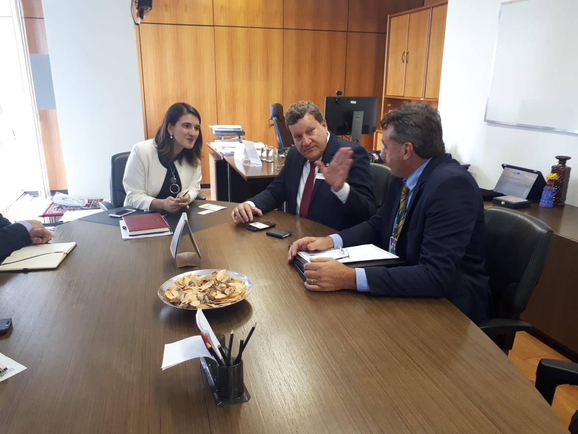 Buligon também cumpriu agenda no Ministério da Economia e esteve em audiência com a Secretária Especial Adjunta da Secretaria Especial de Comércio Exterior e Assuntos Internacionais, Yana Dumaresq. Em discussão, o projeto que prevê a pavimentação do trecho que liga a SC 283 a BR 282, compreendendo 11 kms. A Secretária Especial ficou de formalizar ao Município a atualização do projeto de Chapecó que tramita na União.