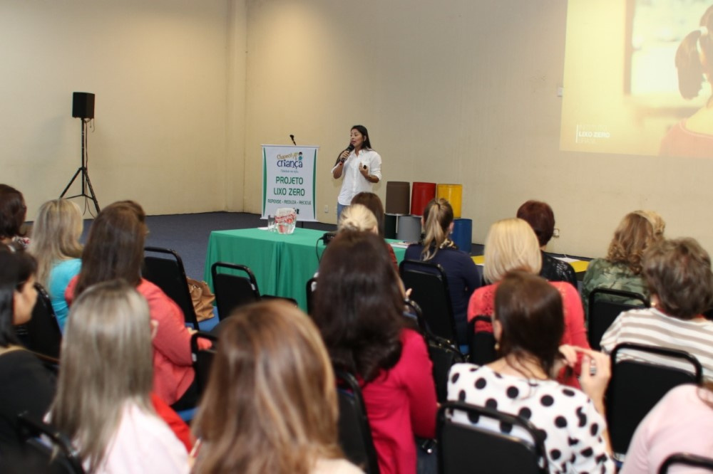 Chapecó, 18/03/2019 segunda-feira. Aconteceu na manhã de hoje (18-03), no Centro de Cultura e Eventos Plínio Arlindo De Nes, a formação e capacitação para gestores das Escolas e Centros de Educação Infantil da Rede Municipal de Ensino do Programa de Conscientização da Responsabilidade Ambiental LIXO ZERO - PCRA. As palestrantes Luiza Denardin Poletto e Júlia Vanin de Morais do Instituto Lixo Zero Brasil fizeram uma explanação sobre o Programa Lixo Zero Chapecó. Na área da educação, o trabalho será executado, a partir da Instituição Chapecó Criança - Cidadania em Ação.