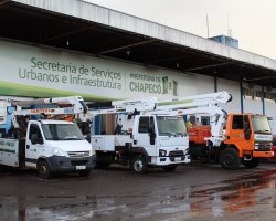 A Administração Municipal de Chapecó realizou investimentos na frota visando ampliar e reforçar o trabalho de manutenção da iluminação pública. Foi adquirido um novo caminhão (FORD cargo 816 S) e um cesto aéreo para a equipe da Elétrica, da Secretaria de Infraestrutura Urbana, responsável pelo trabalho da iluminação. Além do novo veículo, foram realizadas melhorias no caminhão antigo, com a reforma do cesto aéreo e a pintura da carroceria. O investimento total soma R$ 310 mil.
