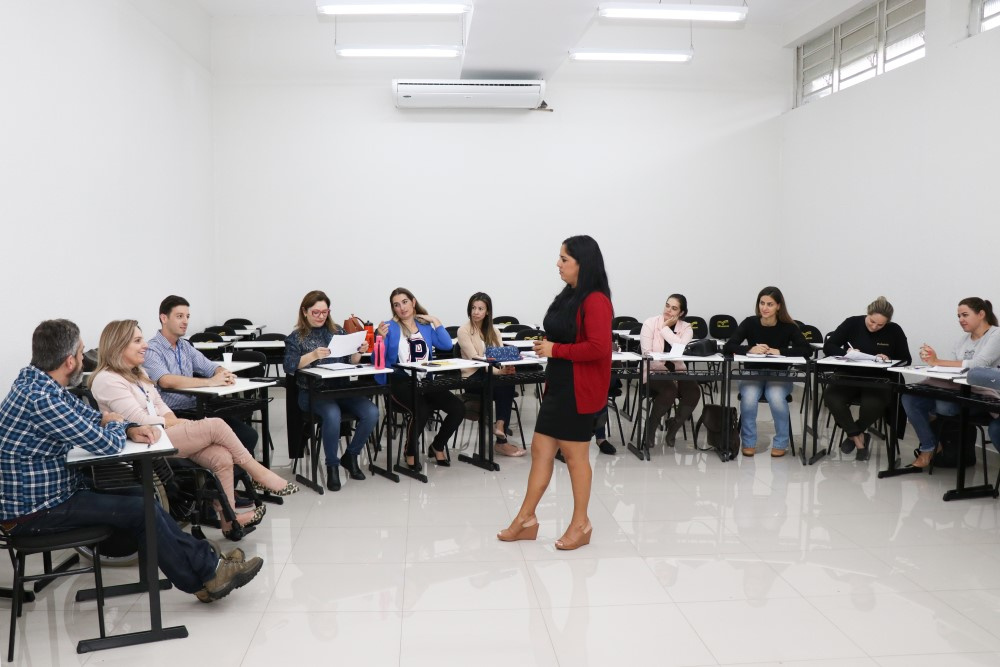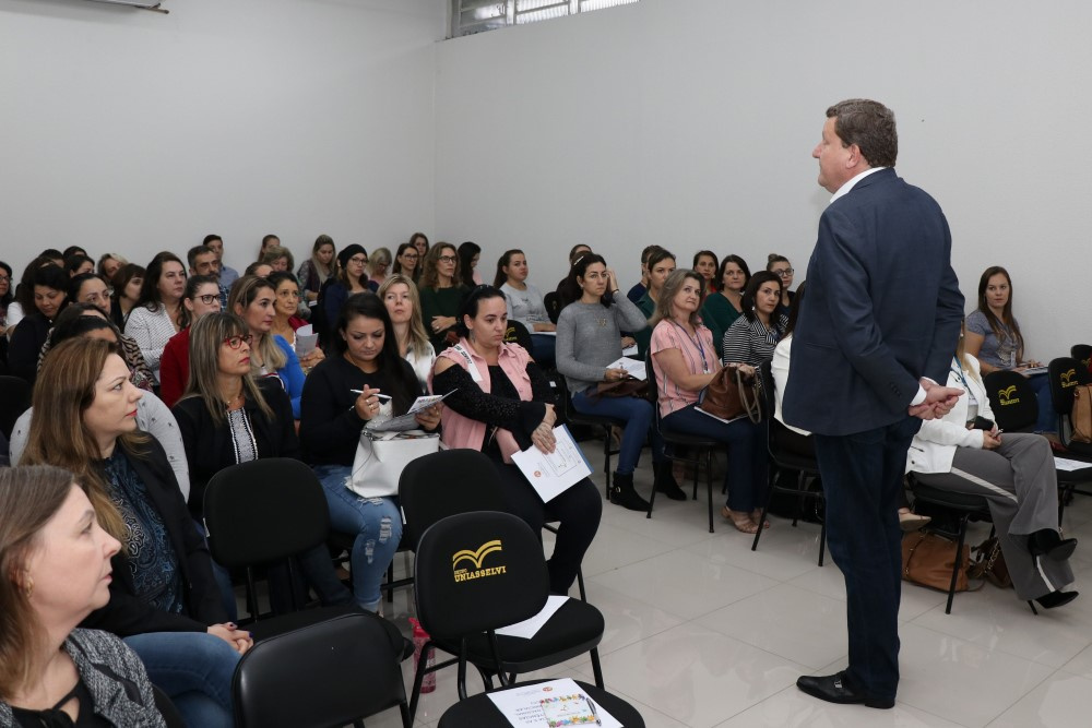 Chapecó, 19/03/2019, terça-feira Os professores regentes de pré ao 5º ano, Língua Portuguesa e Equipe da Educação Infantil e do Ensino Fundamental da Secretaria da Educação participaram nesta terça-feira (19) de uma formação para sobre a Escola da Inteligência (EI) que aconteceu no auditório da Uniasselvi. Essa formação dará suporte ao professor para desenvolver seu trabalho na escola, aprimorando seus conhecimentos sobre os materiais multimídias, os livros diagramados com histórias e ilustrações, e também possibilita que o professor crie atividades e aulas interativas para os alunos. O prefeito de Chapecó, Luciano Buligon e a Secretária de Educação, Sandra Maria Galera participaram da formação e destacaram a importância deste projeto, através do resultado que ele pode atingir.