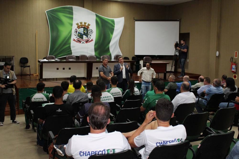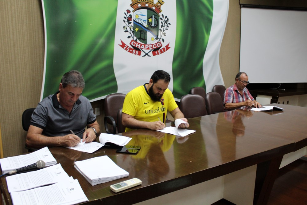 Chapecó, 19/03/2019, terça-feira Nesta terça-feira (19), na Prefeitura de Chapecó, aconteceu a assinatura dos convênios com as entidades que representam as modalidades esportivas chapecoenses. Os recursos vão beneficiar dezenas de atletas, mais de 80 equipes, incluindo-se as que fazem parte do Paradesporto de Chapecó. O valor repassado pela Administração Municipal, por meio da Secretaria de Juventude, Esporte e Lazer SEJEL, será de R$ 2.584.000,00.