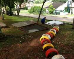 - Implantação de rede pluvial, reparos e manutenção de tubulação, galerias e bocas de lobo na Rua Fernando Machado, nos Bairros Pinheirinho e no Loteamento Vento Minuano;