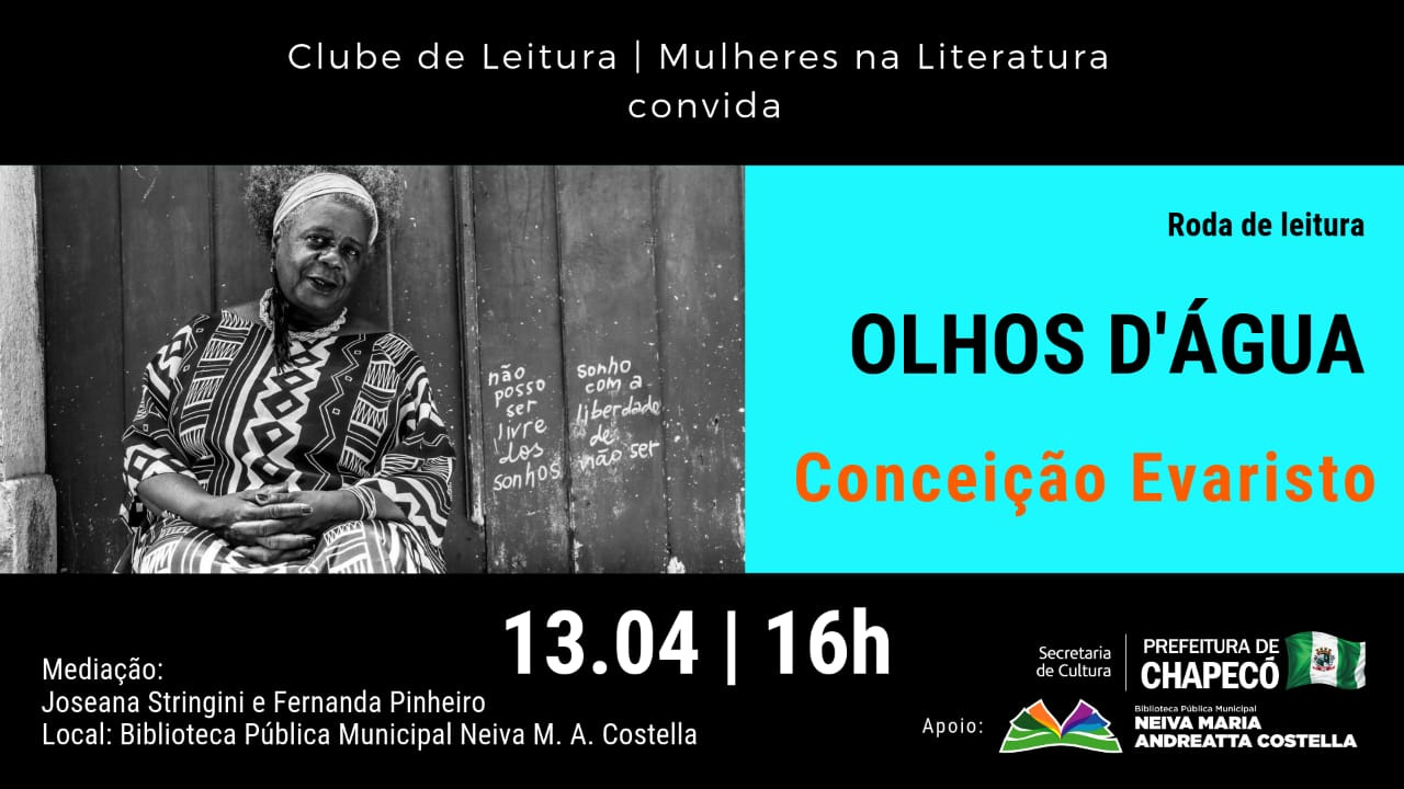 O próximo encontro acontece 13 de abril, sábado, às 16h, na sede da Biblioteca Pública Municipal, no Calçadão da Benjamin Constant. A obra debatida será Olhos Dágua de Conceição Evaristo. Lembrando que existem exemplares deste livro no acervo da Biblioteca, podendo ser efetuado o empréstimo pela comunidade mediante cadastro.