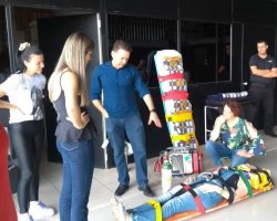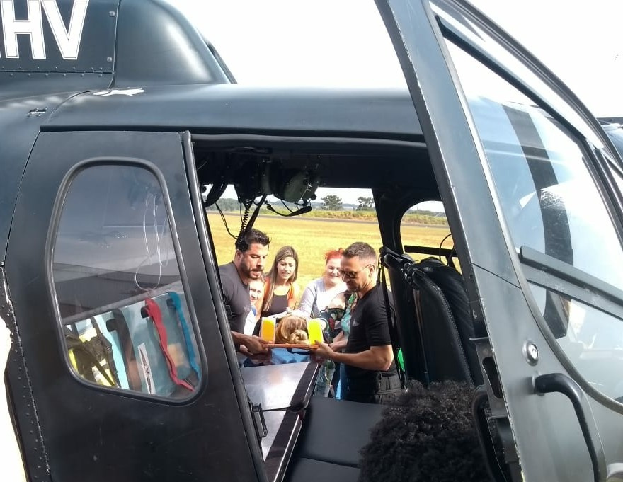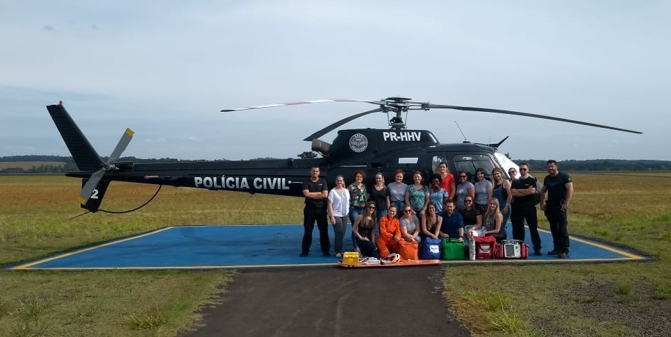 Chapecó, 01/04/2019, segunda-feira Na tarde de domingo (31), a Base do SAER (Serviço Aeropolicial) em Chapecó, onde também atuam os profissionais de Saúde do SARA (Serviço de Atendimento e Resgate Aeromédico), recebeu a visita técnica da tuma de Pós-graduação em Urgência e Emergência da UCEFF/Chapecó. São profissionais da saúde em especialização que tiveram contato com a rotina do SARA e do SAER, além de dados técnicos operacionais como meios de acionamento e questões relacionadas com o tempo resposta no atendimento com o uso do helicóptero do SAER. Durante a visita técnica também foi realizada uma simulação de atendimento com embarque de vítima na aeronave em solo.