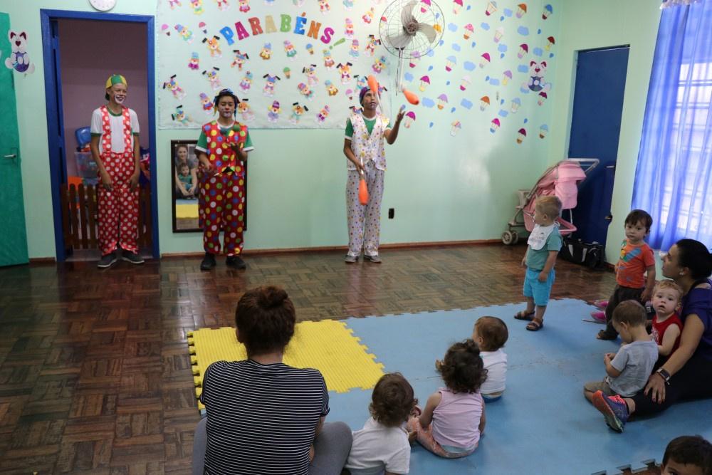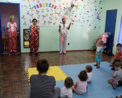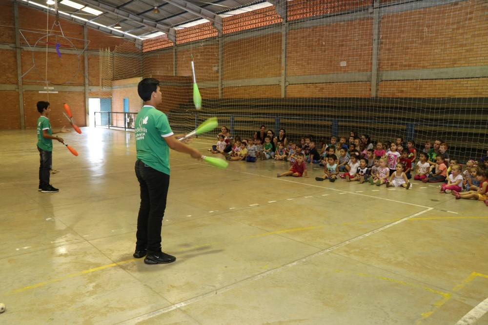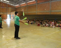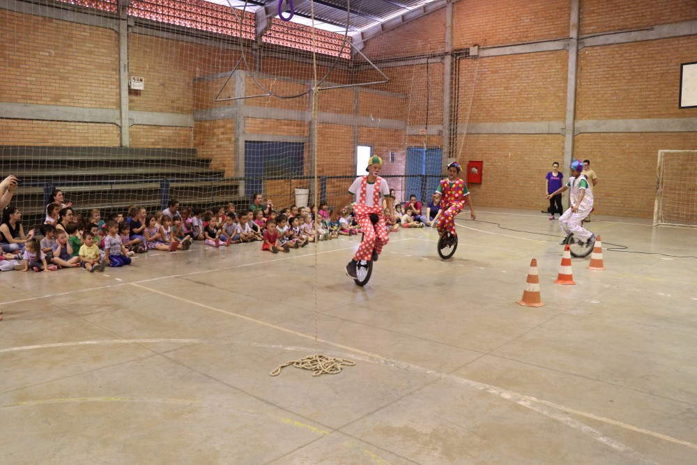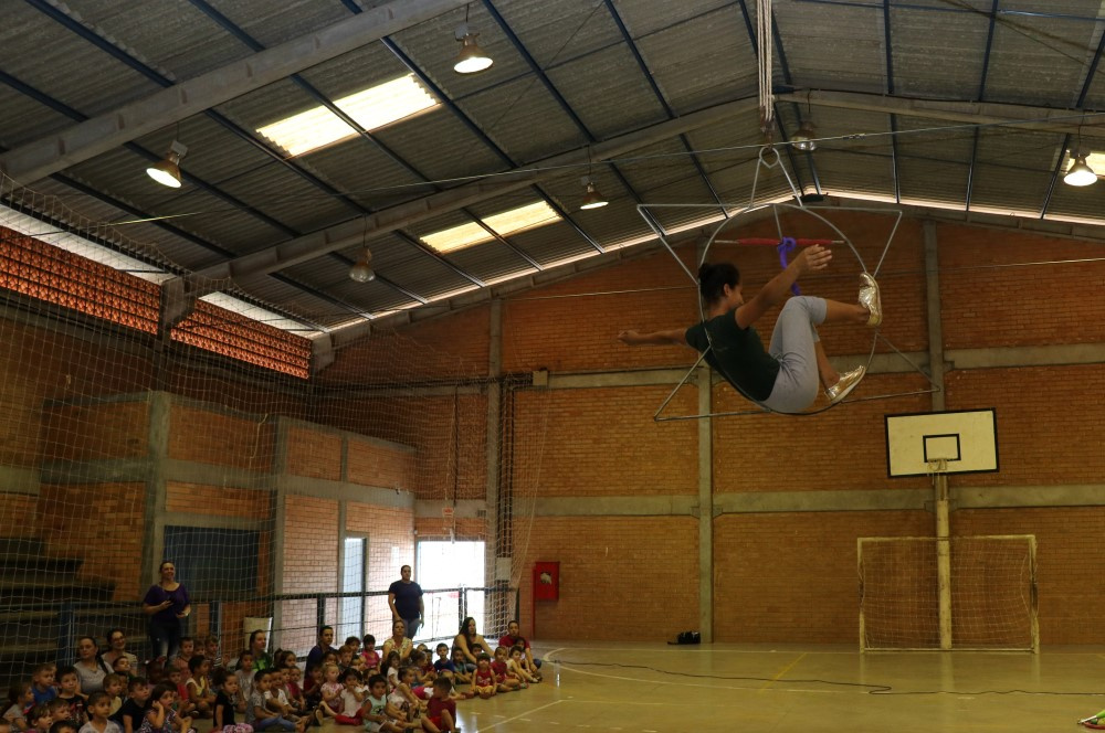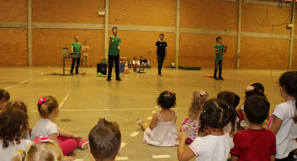 Essa atividade integrou o projeto desenvolvido no Ceim intitulado O Circo vai Começar! que tem como objetivo promover o contato dos alunos com a arte circense, visando a compreensão, valorização e vivência desta manifestação da cultura corporal. Poder trazer essa apresentação e trabalhar com elementos deste tema nas aulas despertou a curiosidade das crianças em relação ao circo. Ver eles felizes e aprendendo, é a melhor recompensa, relata a professora de Educação Física Camila Romanzini Skonetzky.